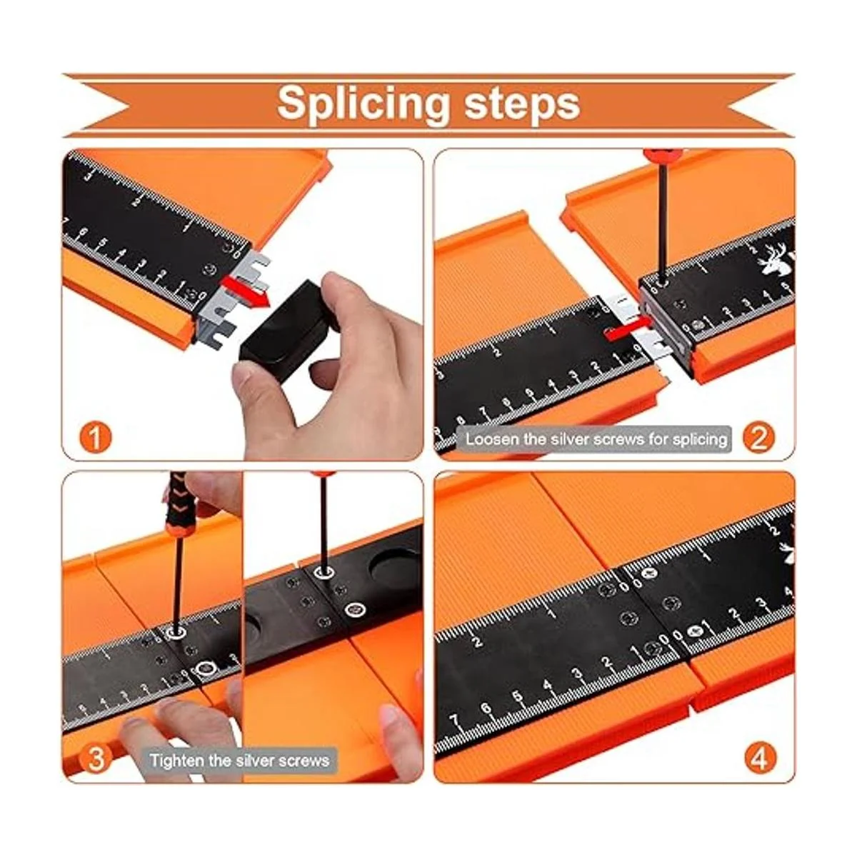 Calibre de perfil conectable: puedes empalmar los calibradores de perfil de 5 pulgadas y 10 pulgadas apretando 4 tornillos plateados 4 tornillos plateados están ubicados en el calibre de perfil de 5 pulgadas, luego puedes tener tres tamaños de calibradores de perfil de 5 pulgadas, 10 pulgadas y 15 pulgadas, que son adecuados para más escenas.