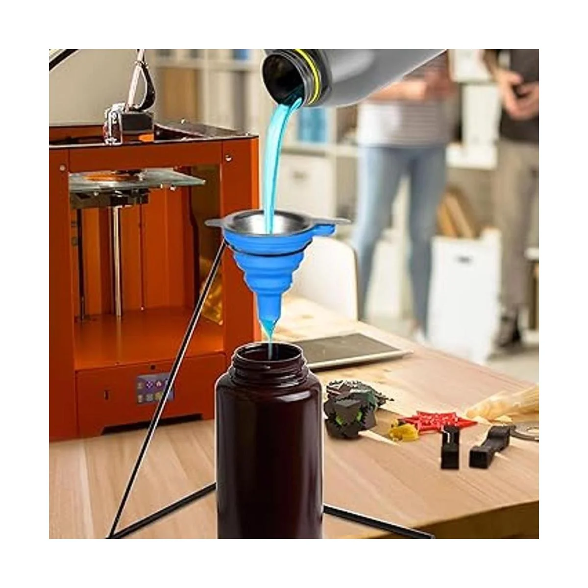 JOREST Kit de embudo de filtro de resina para impresora 3D, 3 filtros de acero inoxidable Plus 2 tipos de colador 3 embudos de silicona plegables cepillo, accesorios de impresora de resina para Anycubic SLAElegoo Mars