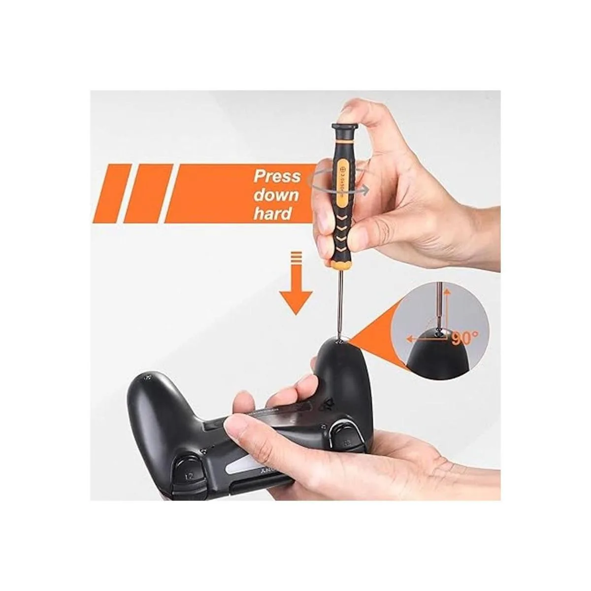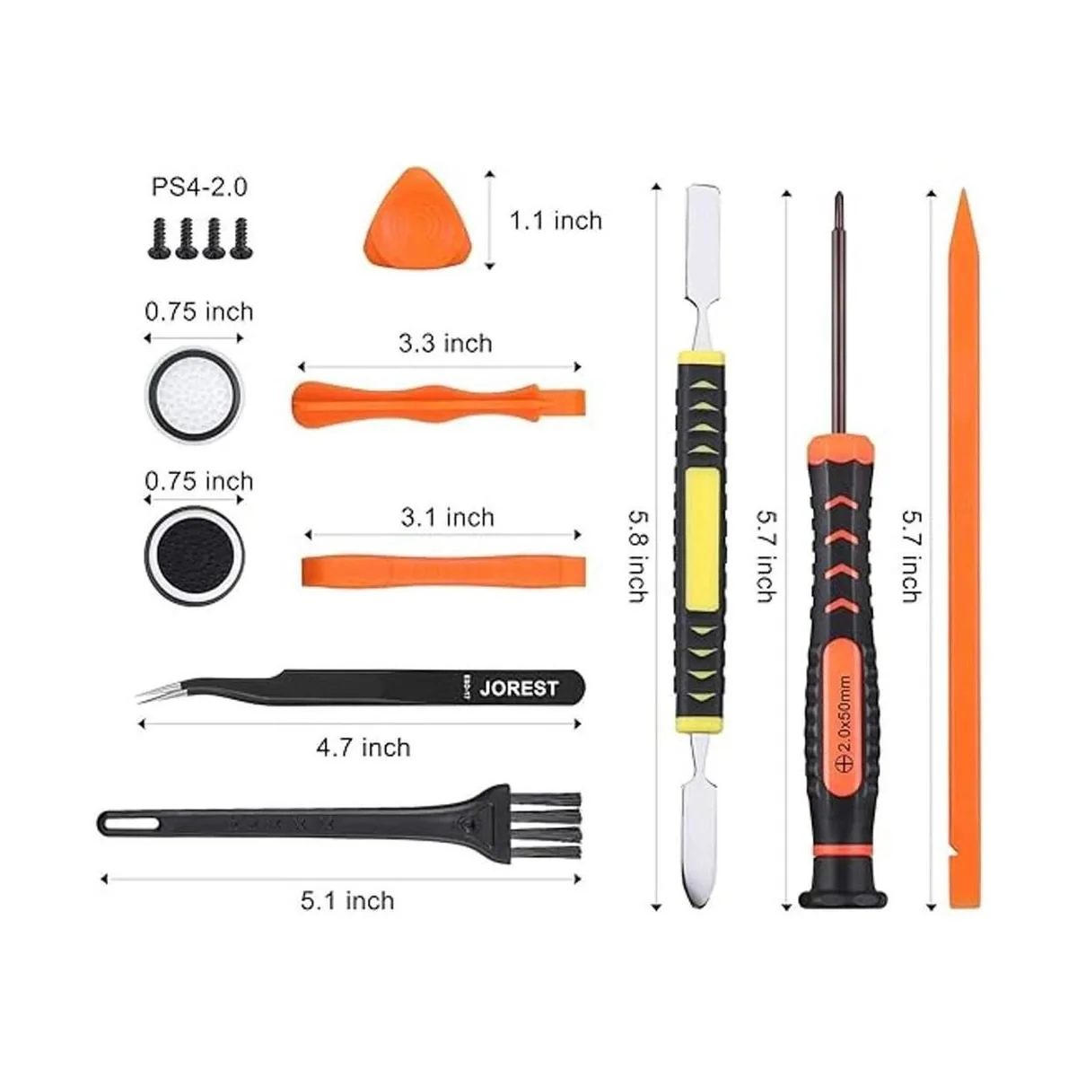 Diferencias de otros productos: en comparación con otros productos, hemos añadido una palanca de metal de doble punta de alta calidad, que se puede utilizar junto con la palanca de nailon de doble punta para satisfacer tus diversas necesidades; también hemos añadido 4 tapas basculantes de mango y 4 tornillos de mango son fáciles de reemplazar; hemos mejorado las pinzas en forma de arco para que sea más fácil agarrar pequeños accesorios PS4.