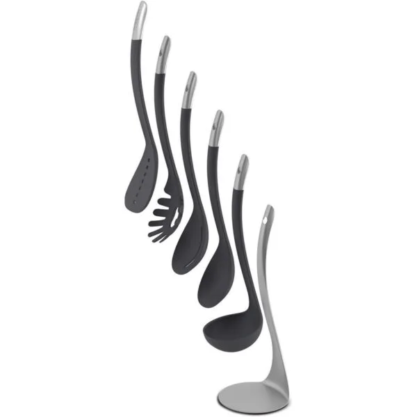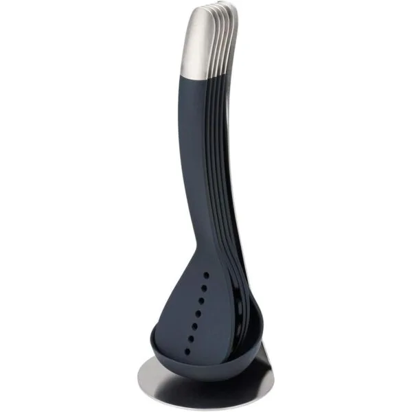 Joseph Joseph Nest Juego de herramientas de cocina apilables compactas de 100 utensilios con soporte de almacenamiento magnético de nailon, 5 piezas, color gris