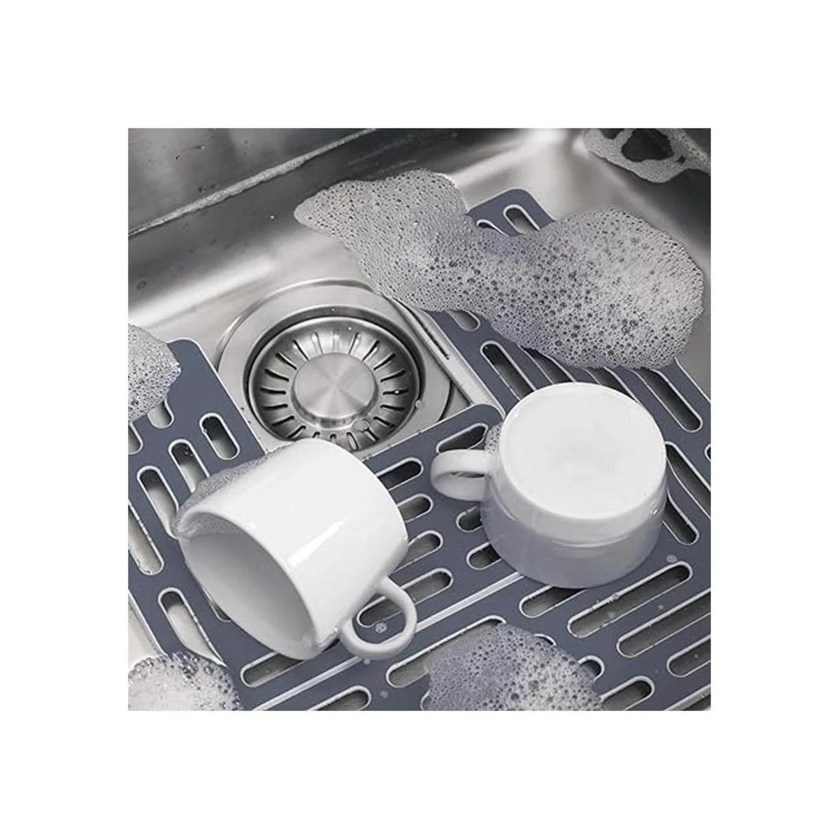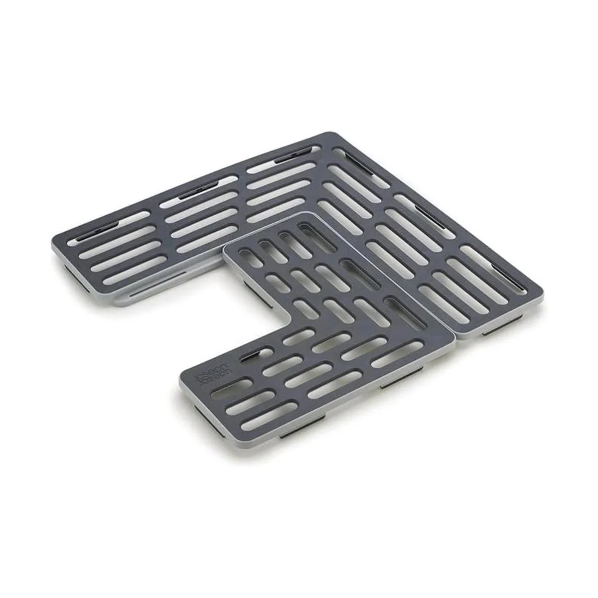 Joseph Joseph SinkSaver Tapete protector de fregadero ajustable, dos secciones de rejilla para diferentes posiciones de drenaje, antideslizante, color gris
