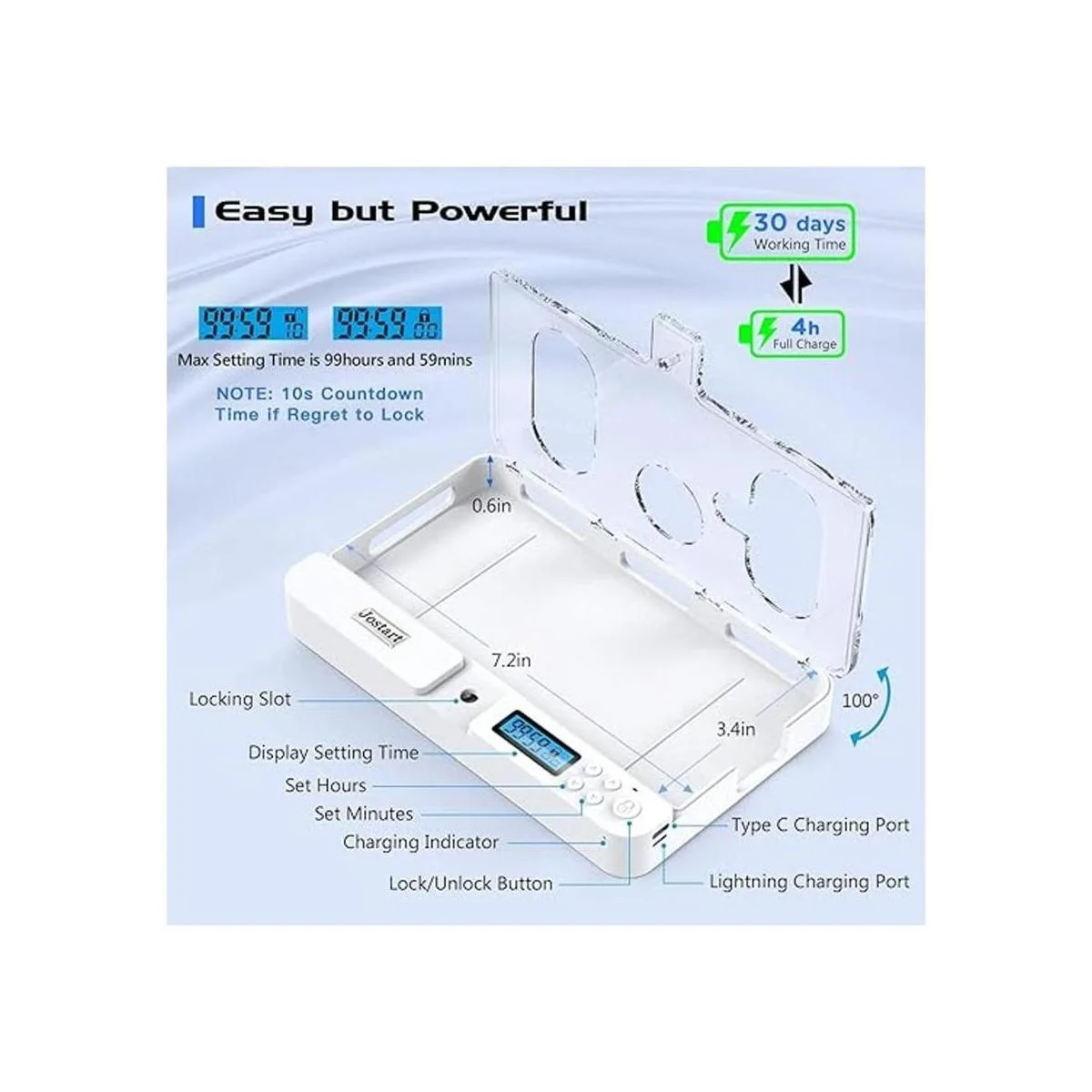Jostart Caja de bloqueo de teléfono portátil, caja de bloqueo de temporizador de teléfono para iPhone 13PorMax1211XXRXS876 y teléfonos Android Sumsung, caja de bloqueo de teléfono celular de autocontrol que evita la adicción a niños, estudiantes y adultos
