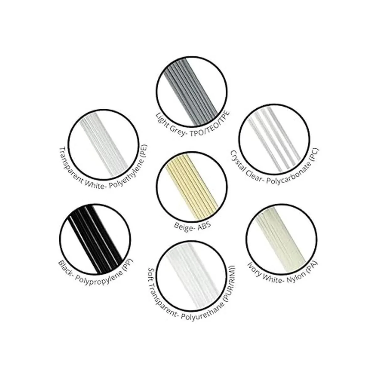 Colores neutros: las varillas de plástico transparente PU negro PP beige ABS blanco PE gris TPO marfil PA transparente PC se mezclan muy bien con la reparación que necesitas. 8 varillas/paquete con 1 paquete de 4 varillas de policarbonato