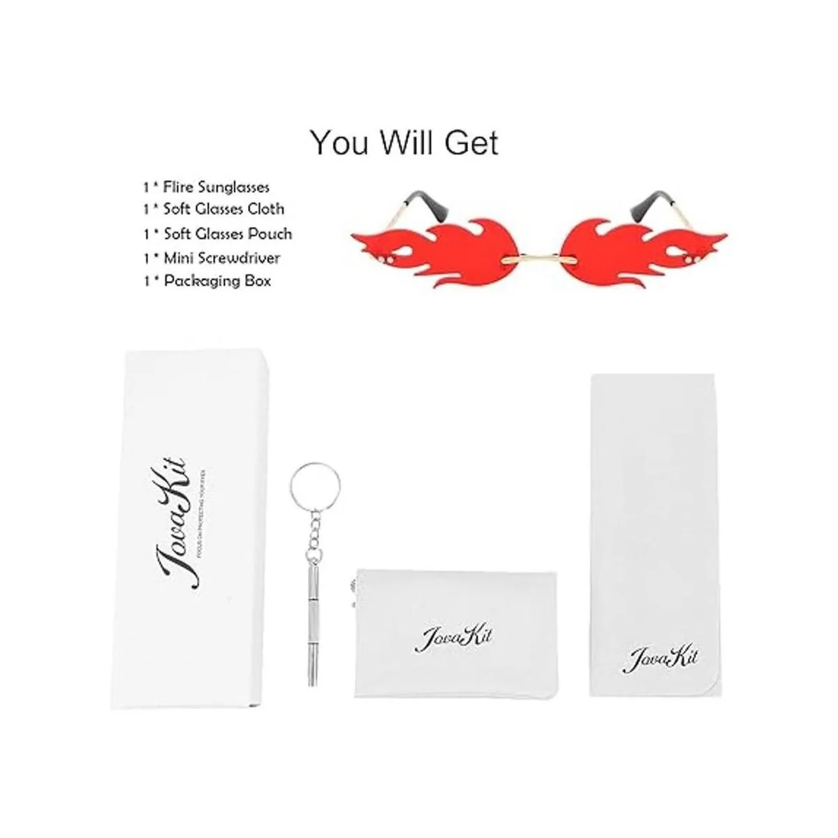 JOVAKIT Lentes de sol de llama fuego para mujeres y hombres, estilo retro, vintage, sin borde, lentes sin marco, con protección UV rojo