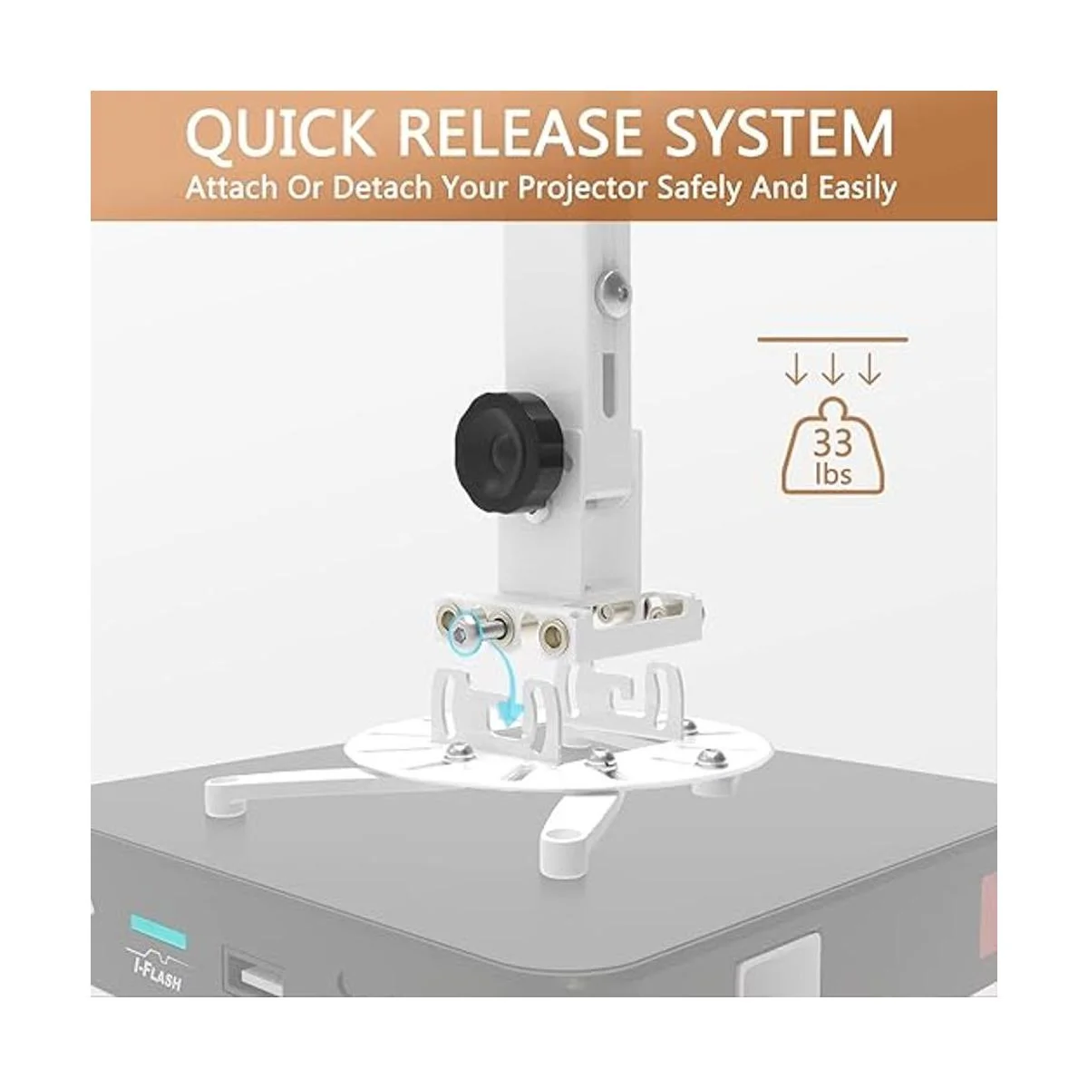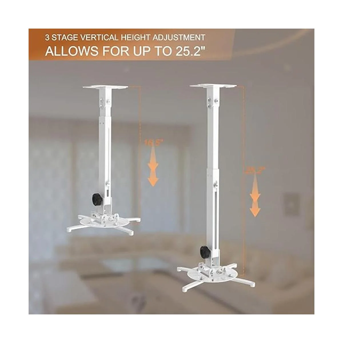 JOY worker Soporte universal para montaje en techo de proyector que se adapta a techo plano o inclinado ajustable con brazos extensibles para proyector del hogar y la oficina, color blanco