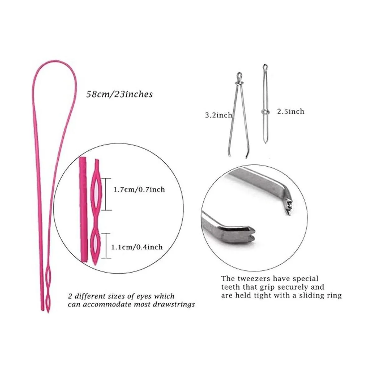 El paquete incluye: 24 cordones de repuesto coloridos para pantalones de sudor, 1 enhebrador de cordón de plástico flexible de 22.8 in, 24 cierres de cordón de plástico de un solo agujero. 1 enhebrador de cordón de metal, 1 pinza de metal.