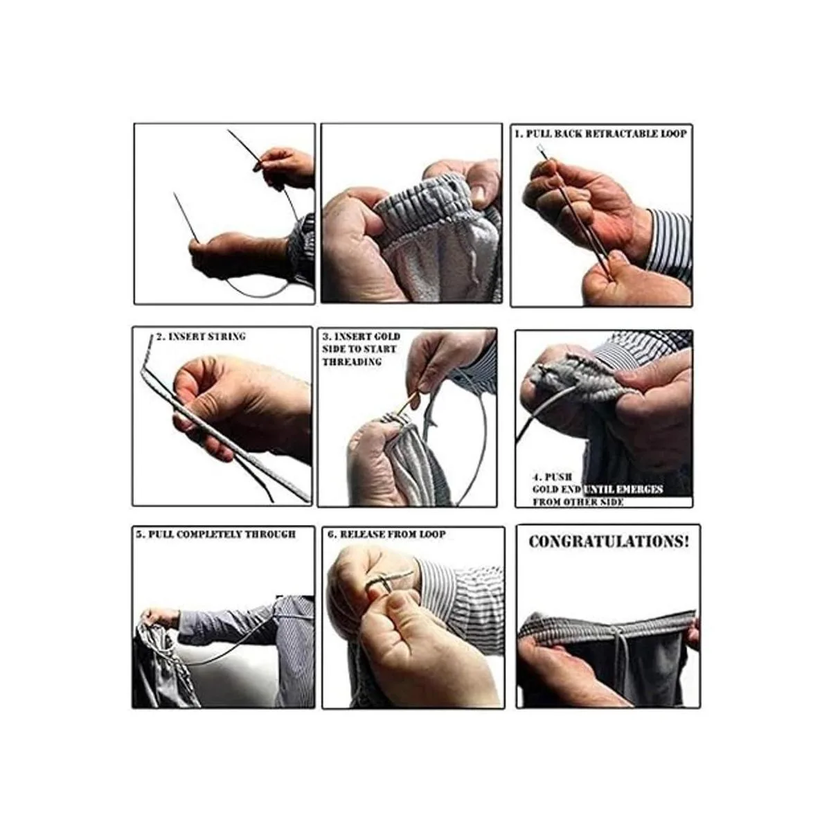 Método de uso: solo necesitas un cordón de rosca a través de un ojo más grande o un ojo pequeño de acuerdo con el grosor o tejido a través de ambos ojos para sujetar firmemente y luego inserta el extremo romo del enhebrador en la carcasa, tira del enhebrador a través de la carcasa hasta que el cordón esté completamente roscado en la carcasa.