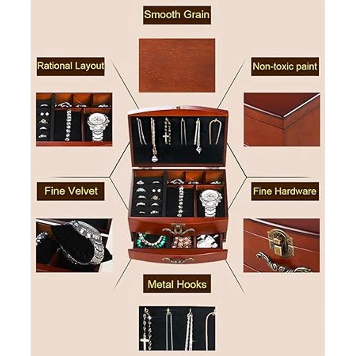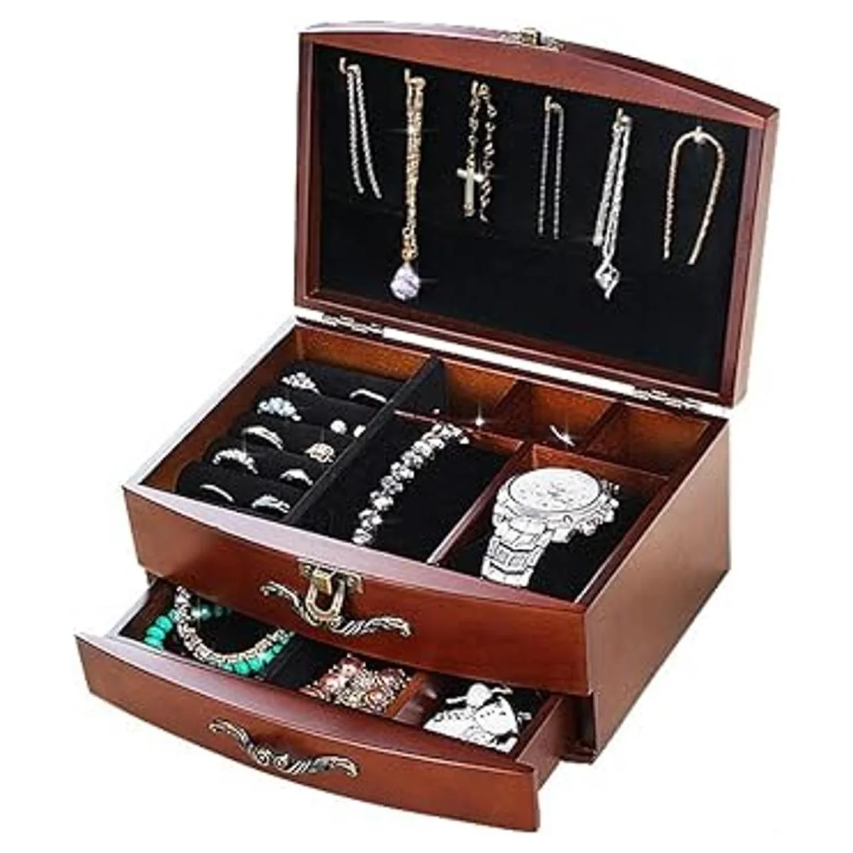Joyero de madera maciza, organizador de joyería para pendientes, pulsera, regalo para mujeres, novia, cumpleaños, aniversario medio