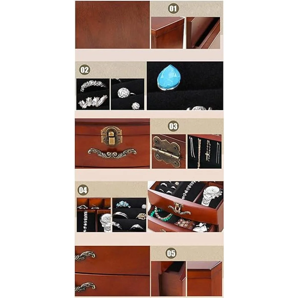 Esta solución de almacenamiento de lujo es perfecta para almacenar y mostrar pequeños artículos de joyería como anillos, pulseras, collares, gemelos, relojes y mucho más.