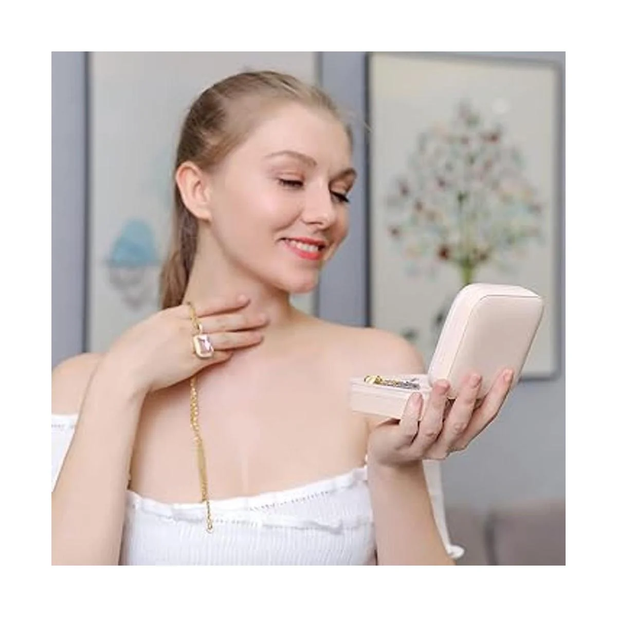Multifuncional: dos separadores extraíbles para satisfacer diferentes necesidades. El espejo integrado es conveniente para llevar joyas, y también es adecuado para maquillaje.