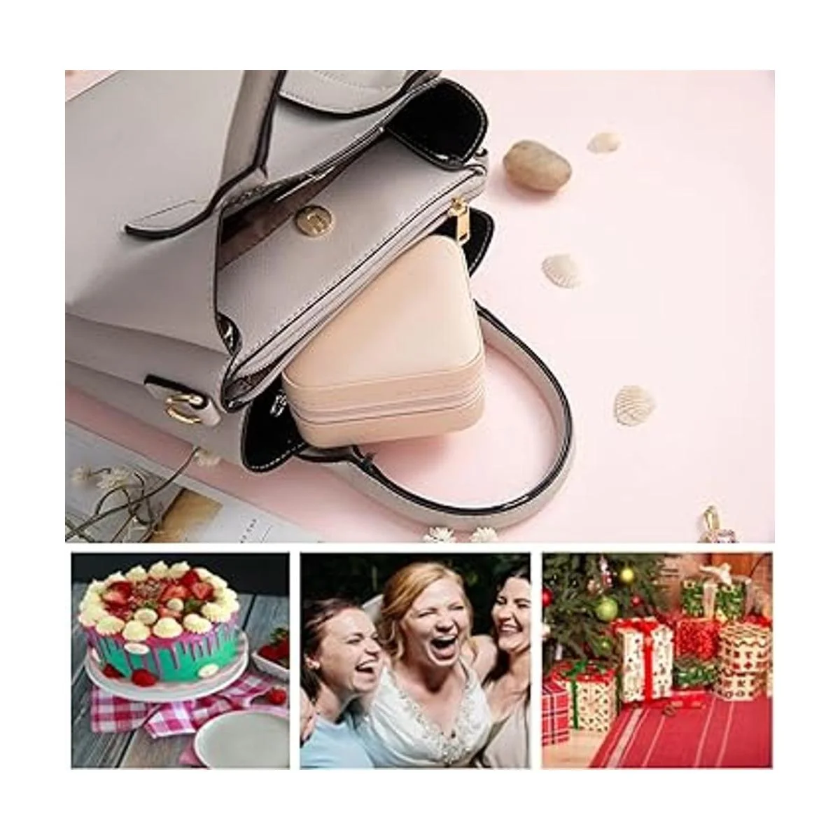 Portátil y compacto: la caja de almacenamiento multifuncional de joyería de viaje se puede poner en el bolso fácilmente. Las joyas se pueden poner ordenadamente y no se enredan. El cuerpo compacto es muy adecuado para el uso diario y viajes.
