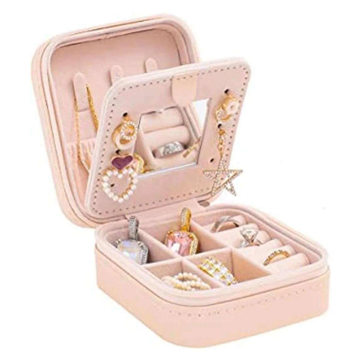 Joyero de viaje, joyero de viaje, organizador de joyas de viaje, pequeño organizador de joyas para niñas y mujeres con espejo