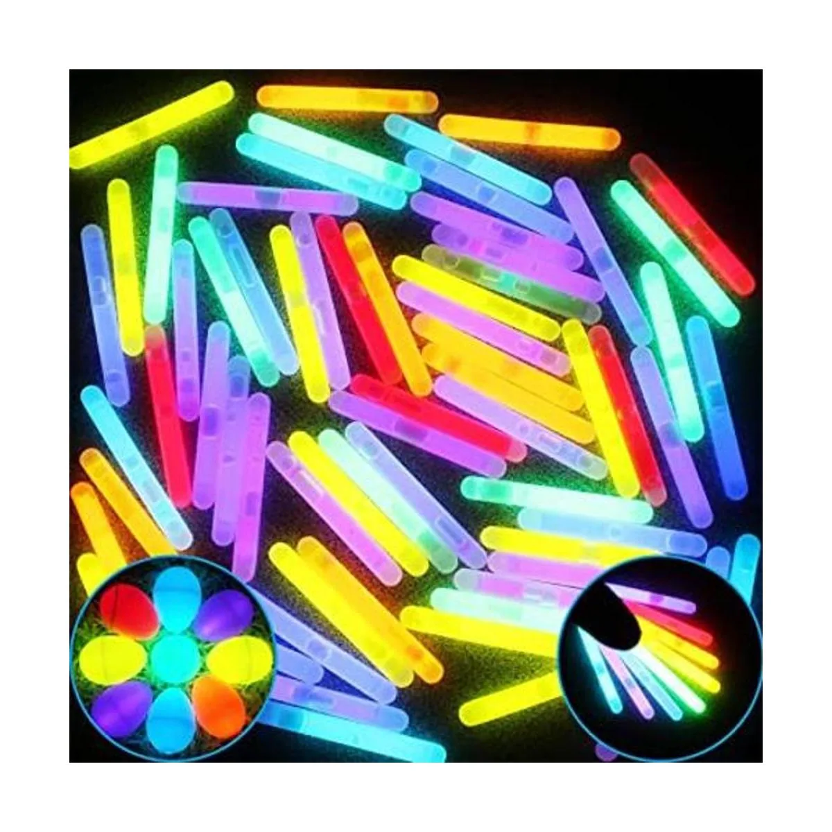 JOYIN 100 mini barras brillantes a granel de 1.7, en 8 colores, para huevos de Pascua luminosos, brillantes en la oscuridad para niños, regalo de relleno de cestas de Pascua, recuerdos de fiesta de Pascua, Navidad, Halloween, fiesta de Año Nuevo 2021