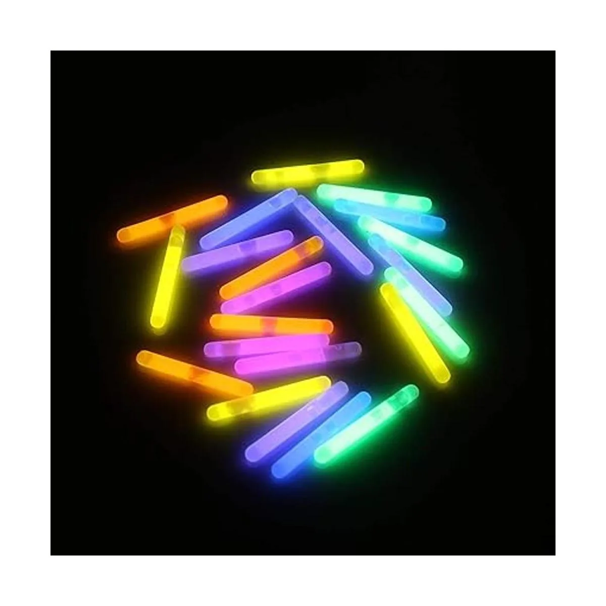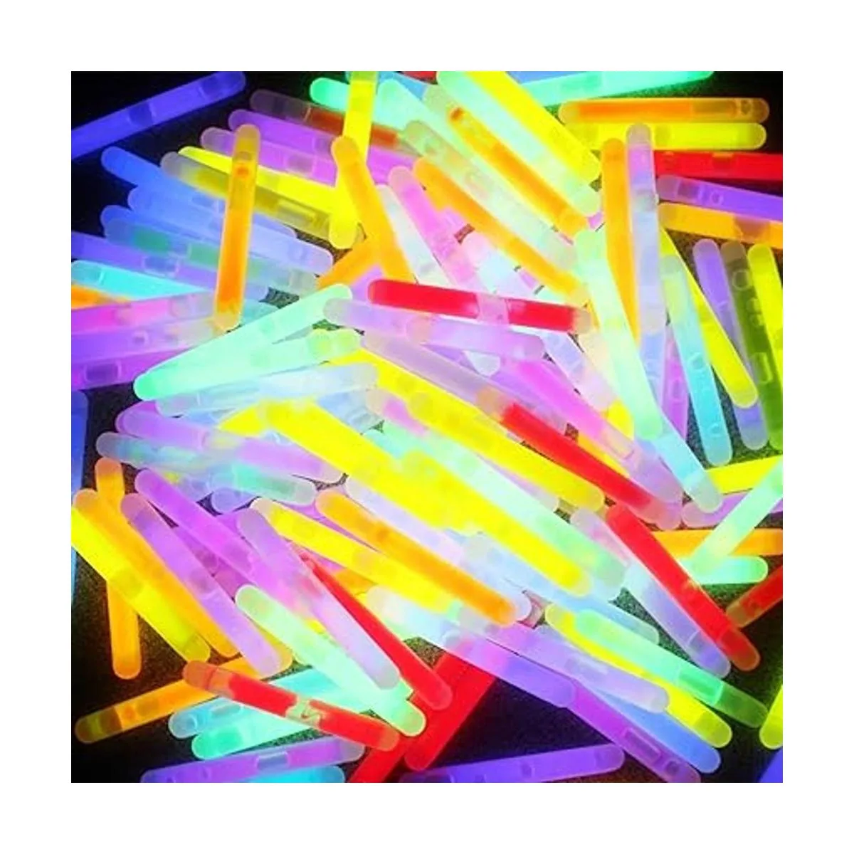 Juego completo. Nuestro conjunto de barras luminosas que brillan en la oscuridad incluye 100 unidades y cada barra mide 1.7.