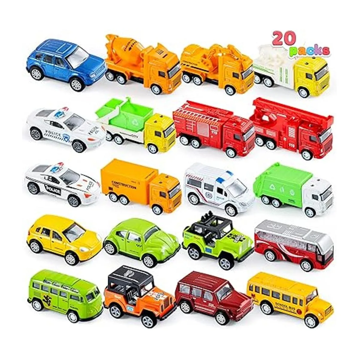 JOYIN 20 piezas de autos de juguete de metal fundido a presión, juego de vehículos para niños pequeños, automóviles de juego para niños, automóviles de caja de fósforos para niñas y niños, recuerdos de fiesta infantil, los mejores regalos para niños