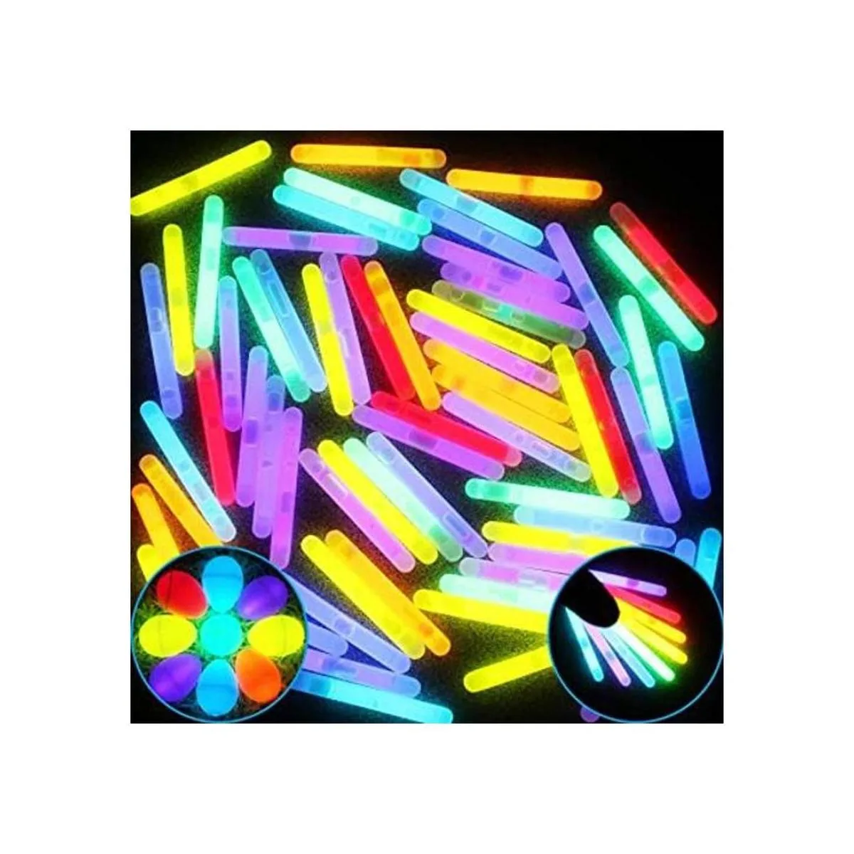 Paquete de barras de brillo de alta calidad. Tamaño: Cada varilla luminosa es de 1.7 pulgadas.
