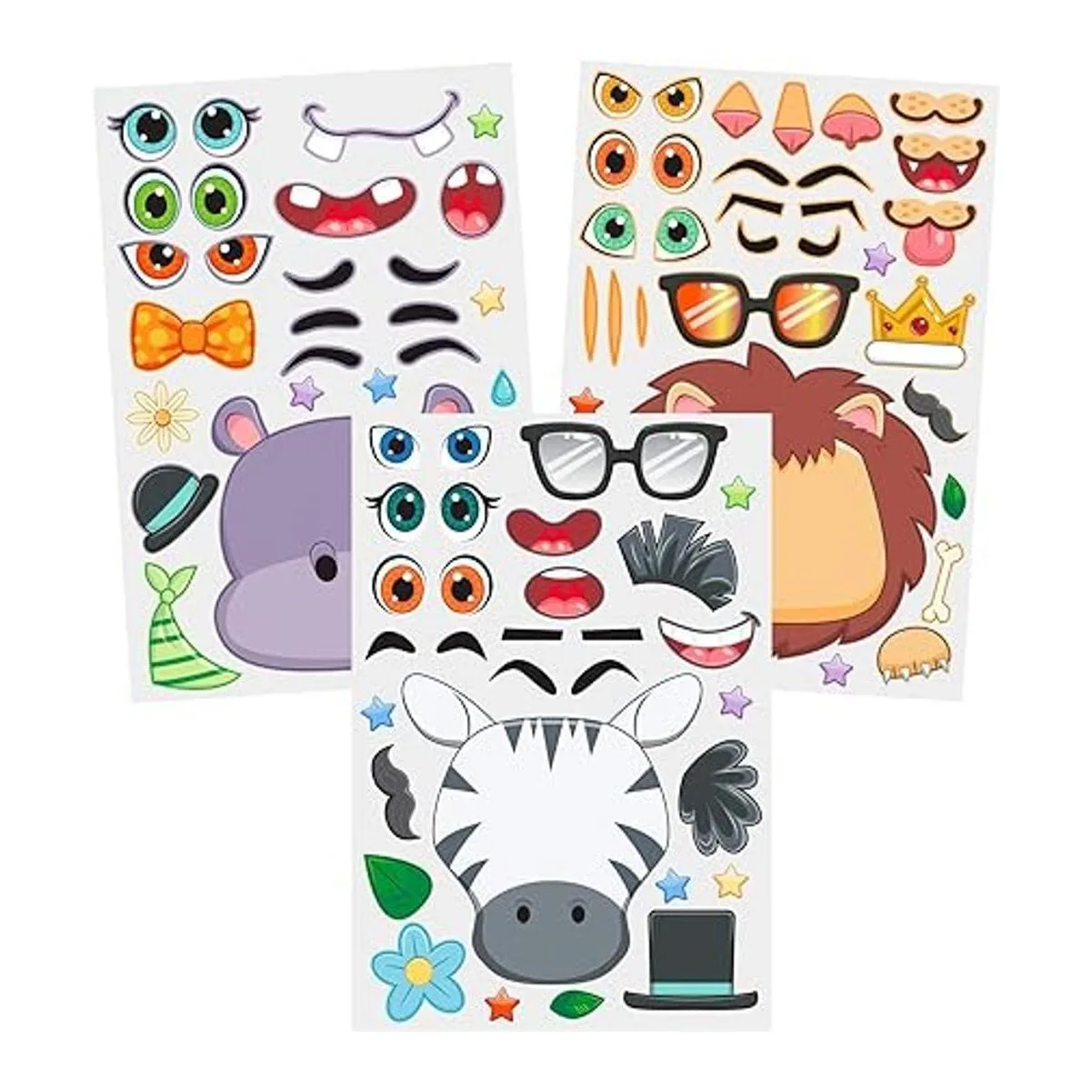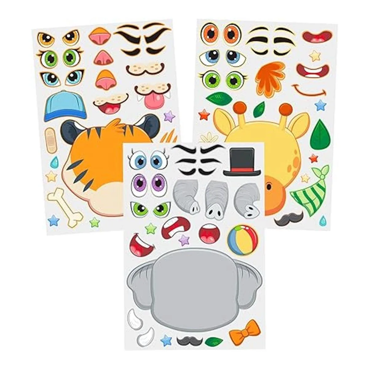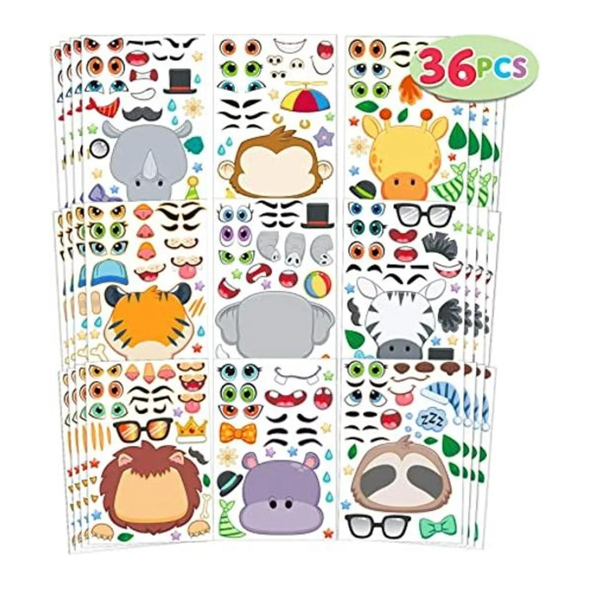 JOYIN 36 hojas de calcomanías para hacer una cara que hacen que tu propio animal de safari mezcla y combina hojas de calcomanías con animales safaris, suministros de recuerdos de fiesta para niños, manualidades
