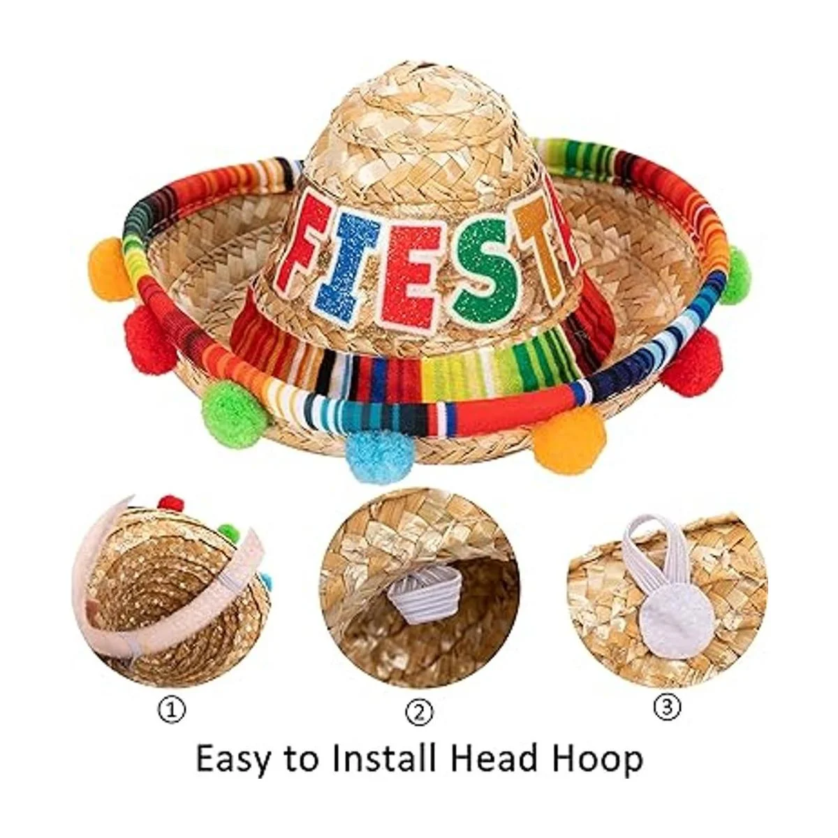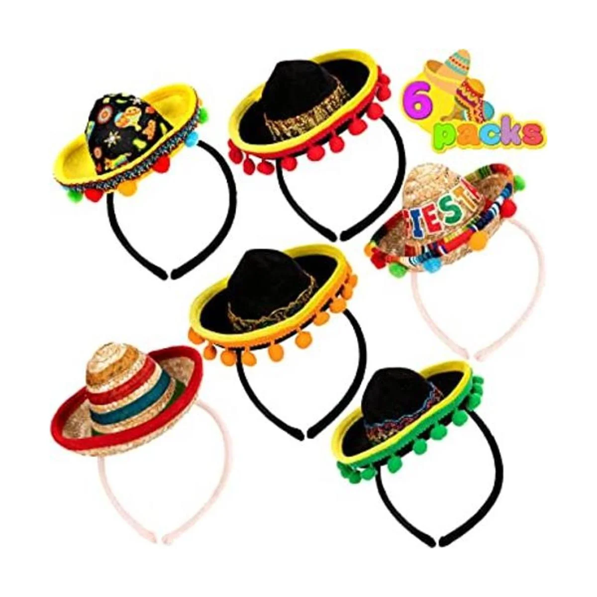 JOYIN 6 piezas Cinco De Mayo Fiesta de tela y paja sombrero diademas traje de fiesta para diversión, fiesta sombrero suministros de fiesta, decoraciones temáticas mexicanas, Luau evento Foto Props, Dia De Muertos y favores de fiesta