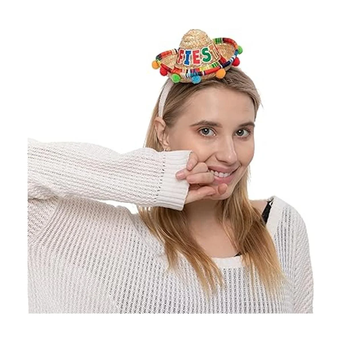 Paquete de gran valor: Nuestro juego de diademas festivas incluye 6 diademas con sombreros de tela y con sombrero de paja. Las diademas con sombrero de tela cuentan con patrones únicos en el sombrero y coloridos flecos de bola. Las diademas son flexibles y de color negro. Las diademas de sombrero de paja cuentan con decoración mexicana en el sombrero de paja beige. La diadema es flexible y de color blanco.