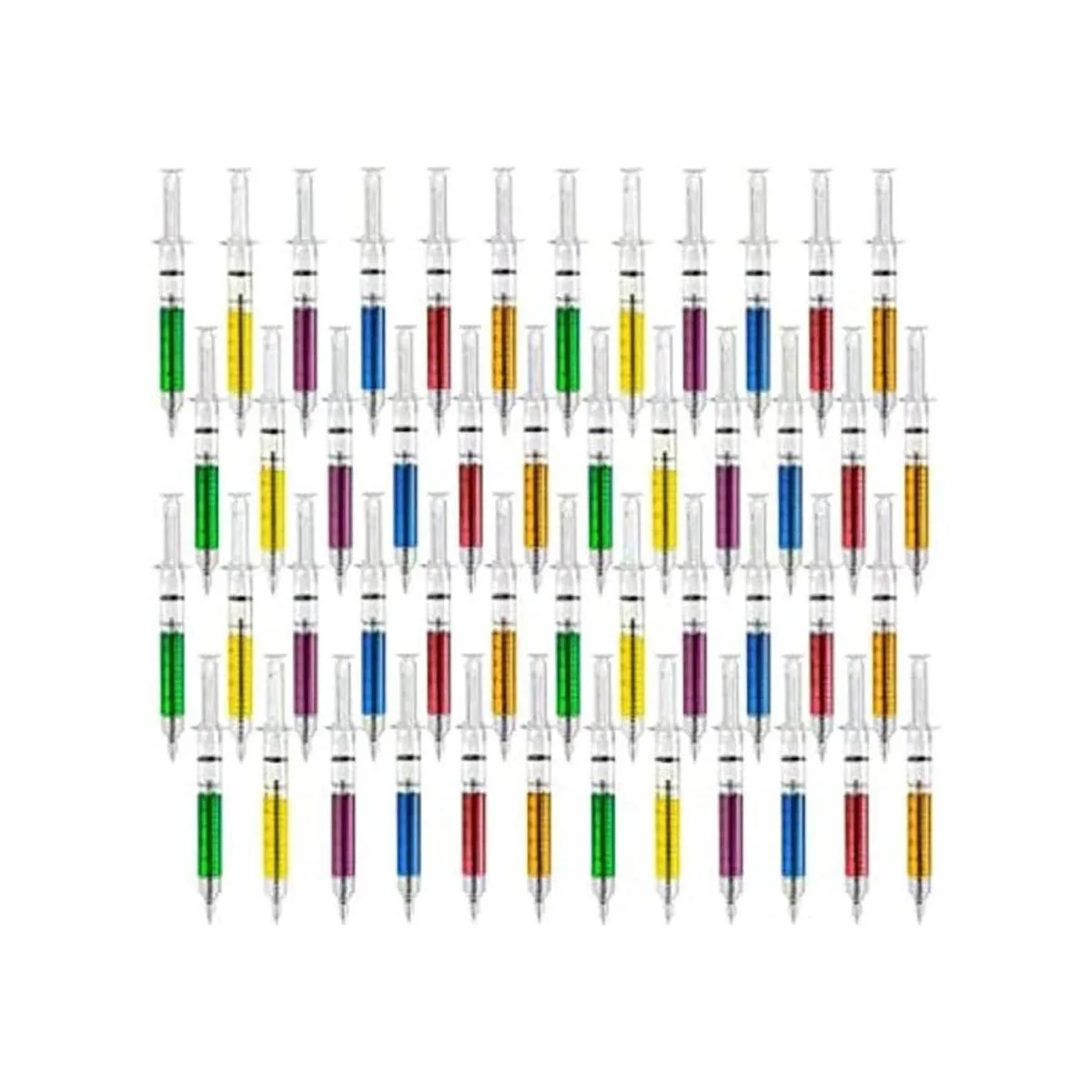 Paquete de gran valor. Nuestro juego de bolígrafos de jeringa incluye 36 bolígrafos multicolor en forma de jeringa que incluyen 3 colores de tinta para escribir: rojo, negro, elección de tinta azul.