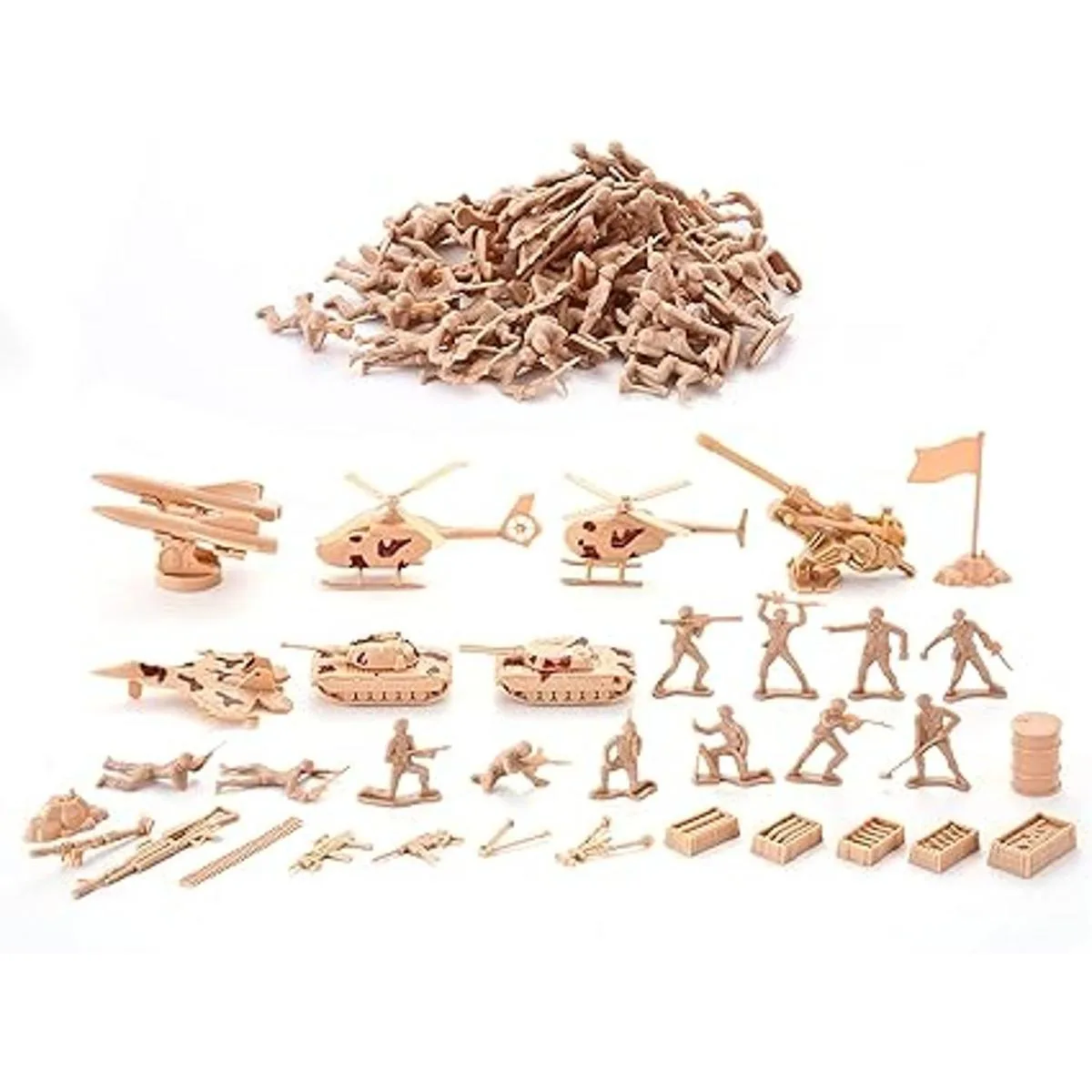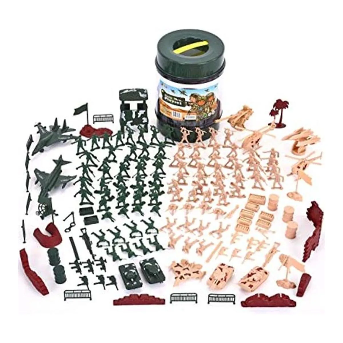 Gran valor con 164 piezas de soldado militar figuras de acción del ejército grupo de batalla militar de lujo. Incluye soldados, aviones de combate, helicópteros, tanques, camiones, vallas, sacos de arena, piedras y otros equipos archivados de batalla.