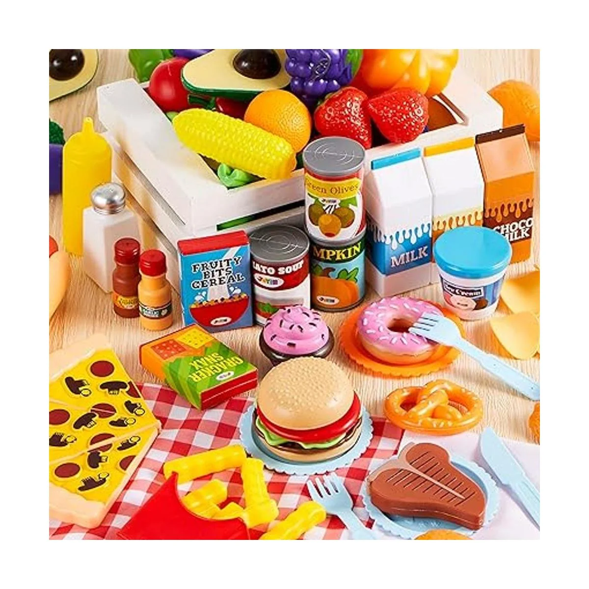 JOYIN Juego de 200 piezas de comida de lujo para niños, comida de juguete, accesorios de cocina con colores realistas, regalo de cumpleaños para niños, juguetes de fiesta