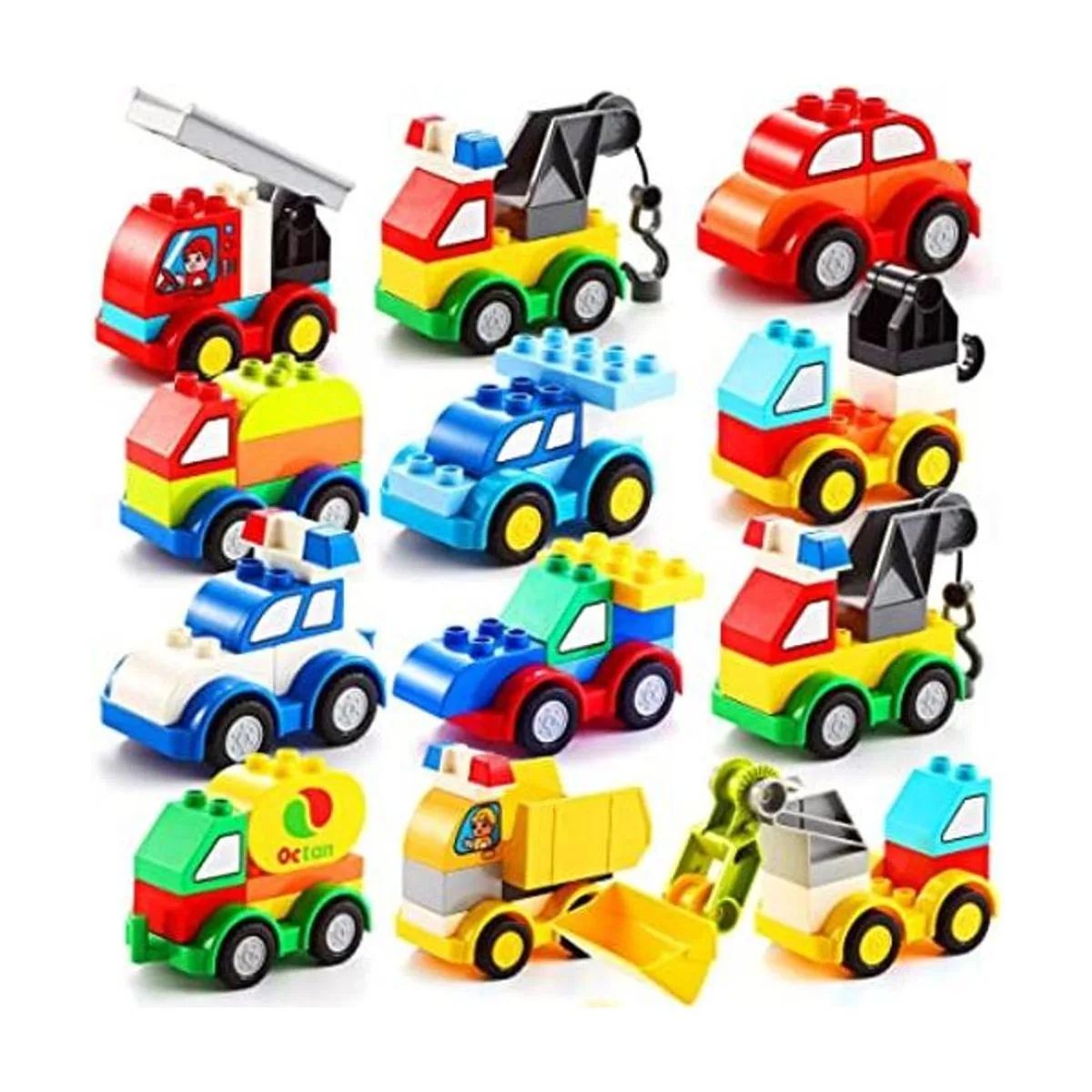 JOYIN Juego de 80 piezas de bloques de construcción de automóviles para niños, 12 vehículos diferentes, construye tus propios autos de juguete, compatible con ladrillos de construcción de marca para niños, niñas, regalo de fiesta de Navidad