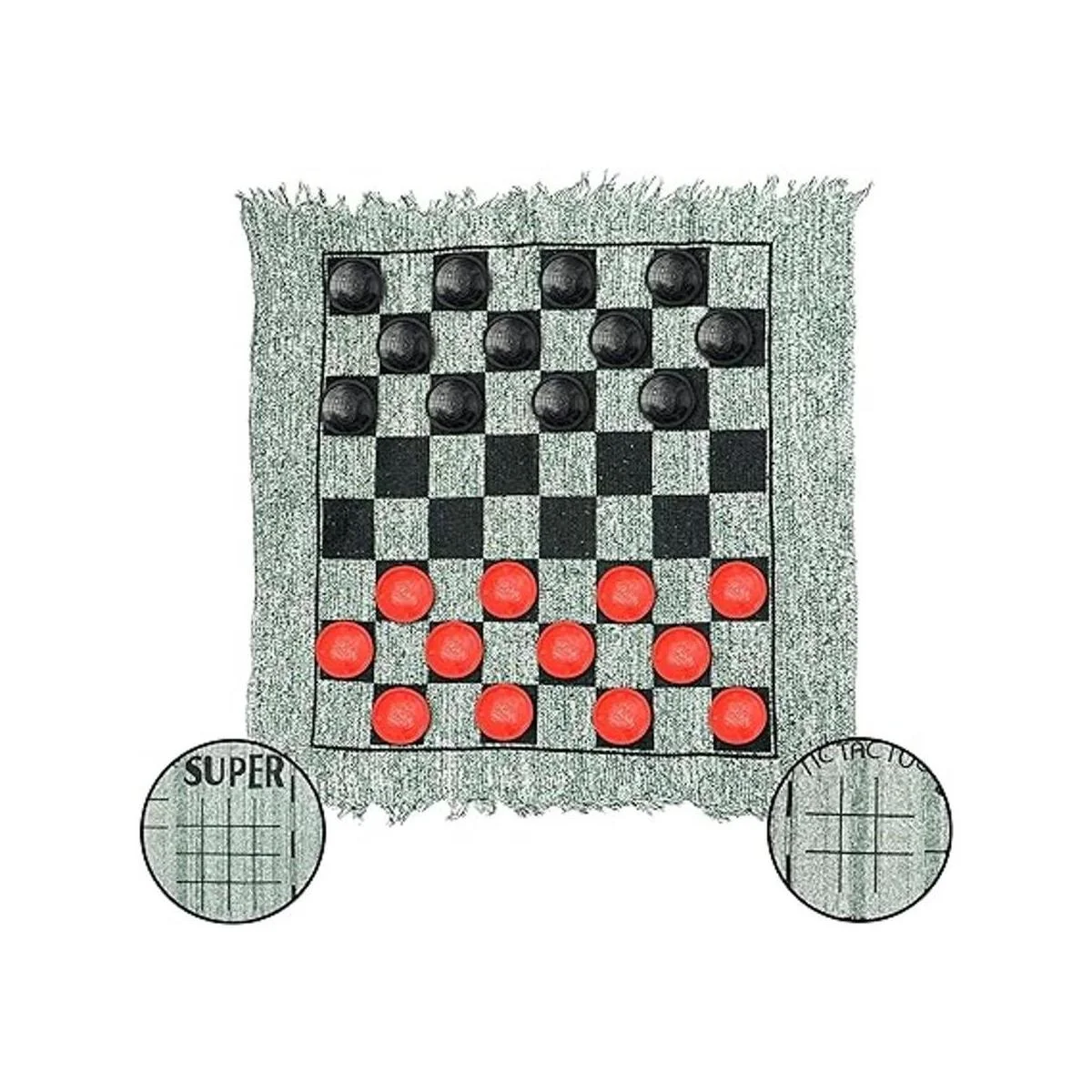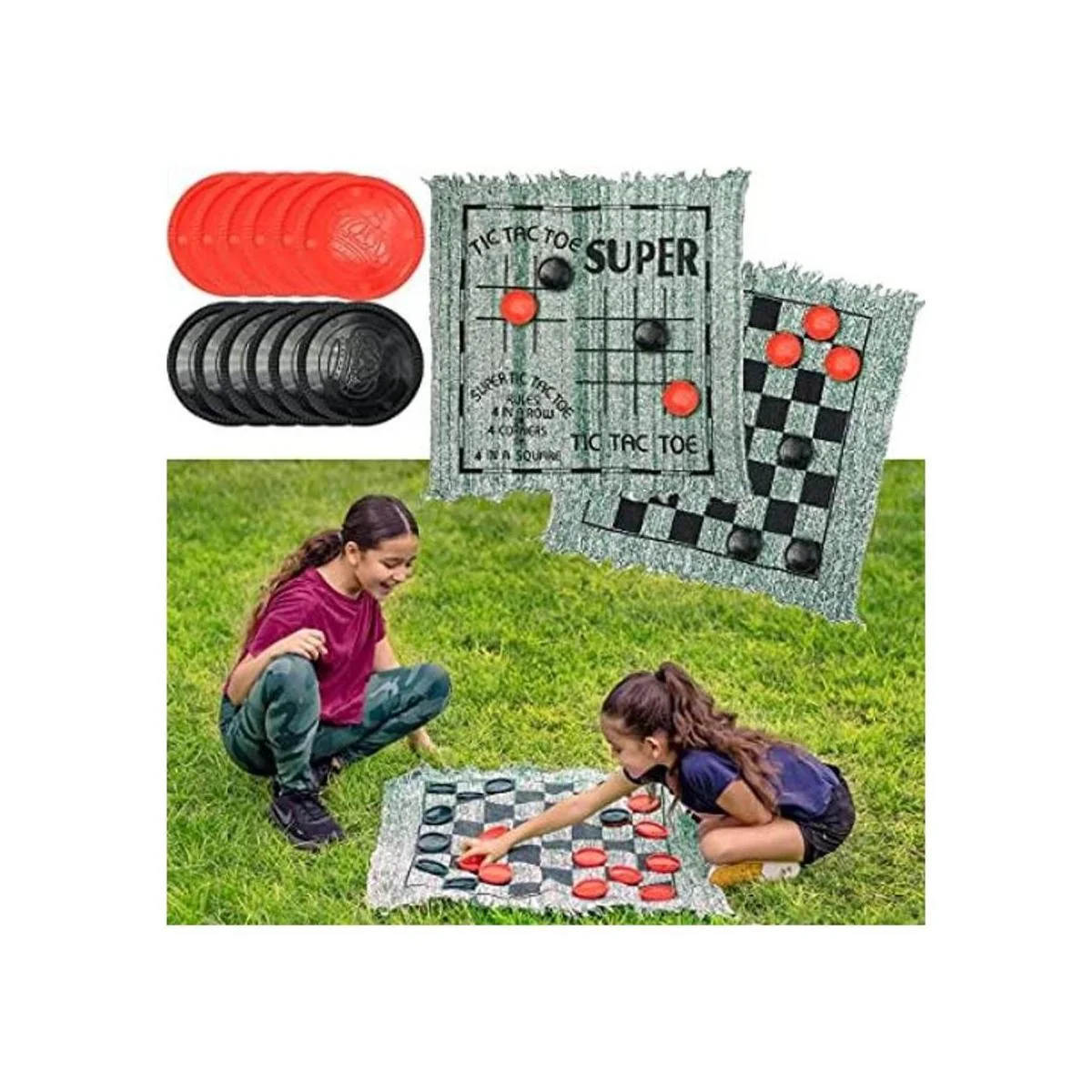 Función real. Nuestro juego de mesa gigante a cuadros incluye tres juegos clásicos en uno Damas Tic Tac Toe y MEGA Tic Tac Toe. Este juego de alfombras definitivamente será un gran éxito en las noches de juego familiares, picnics de fin de semana, fiestas de cumpleaños, juegos de fiesta de vacaciones y reuniones.