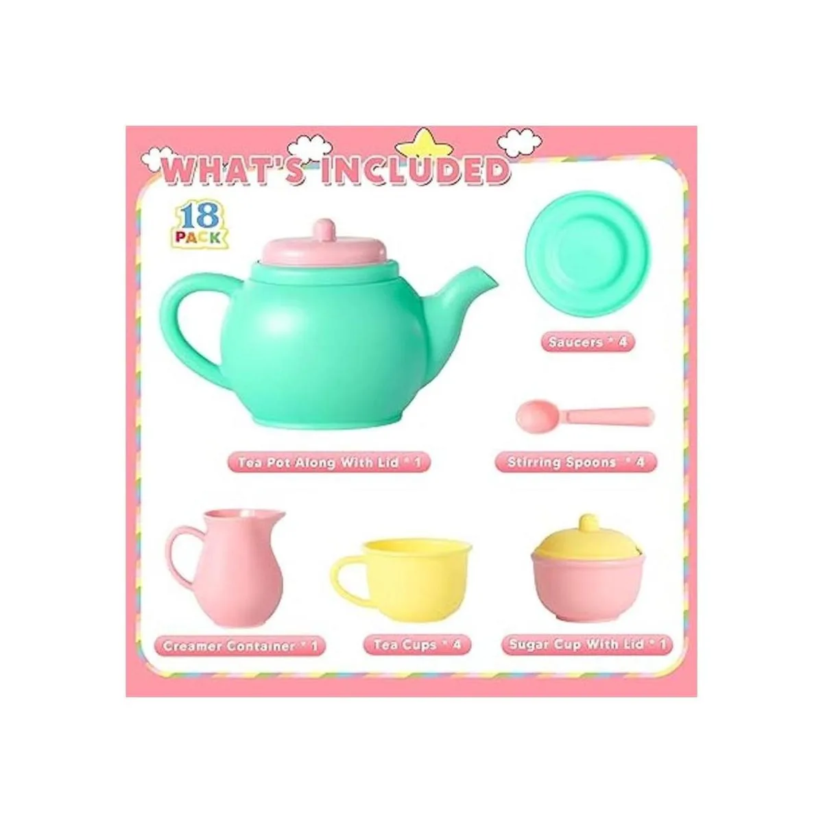 JOYIN Juego de té de 18 piezas de juego de simulación, accesorios de comida para jugar, sin BPA, sin ftalatos, juego de té de plástico, mini cocina para niños, regalos para niños y niñas de 1, 2, 3, 4, 5, 6 años