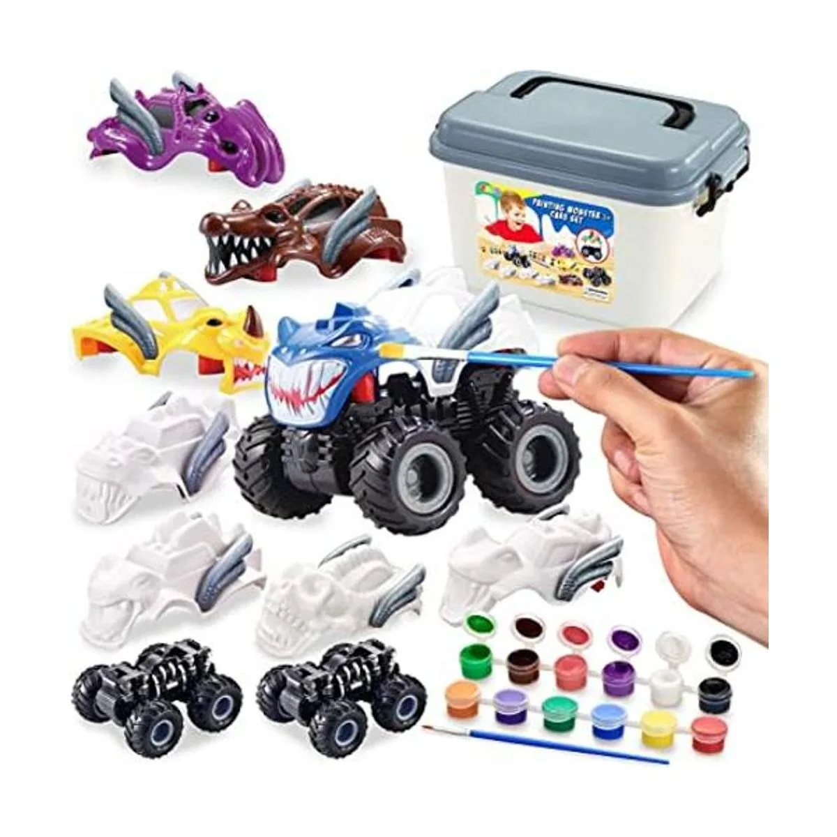 JOYIN Kit de manualidades para niños, construye y pinta tu propio monstruo, kit de arte y manualidades, juego de juguetes de bricolaje para hacer tu propio camión de monstruo con fricción