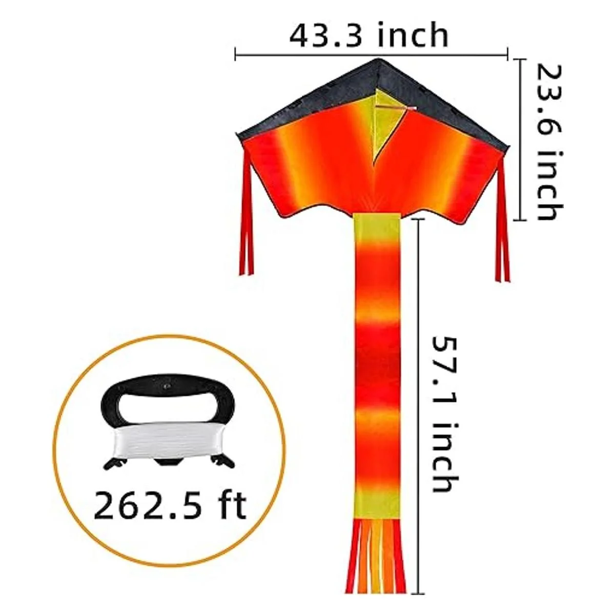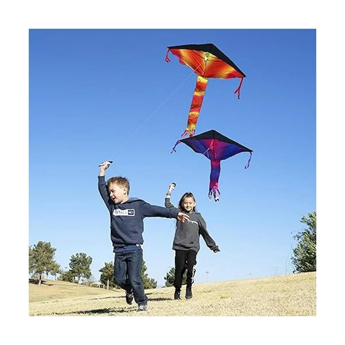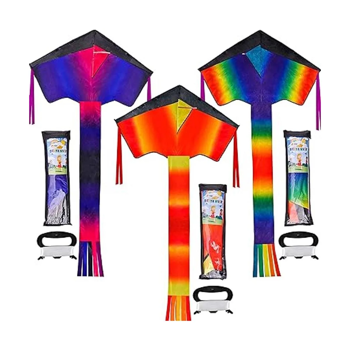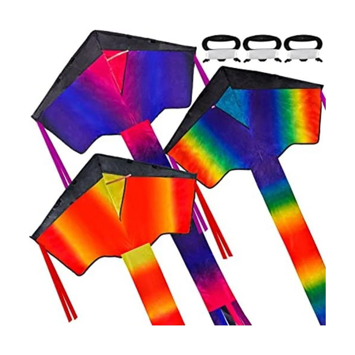 Diseño único. Nuestras cometas Easy Flyer cuentan con un suave color arcoíris degradado, un cálido color degradado y un color degradado frío que seguramente iluminará tu estado de ánimo mientras vuela y añade color al cielo. Esto incluye 3 cometas de nailon de 43.3 in de ancho x 23.6 in de largo con colas de 57.1 in y una guía de instrucciones de montaje. La cuerda del mango de cometa es de 262.5 ft.