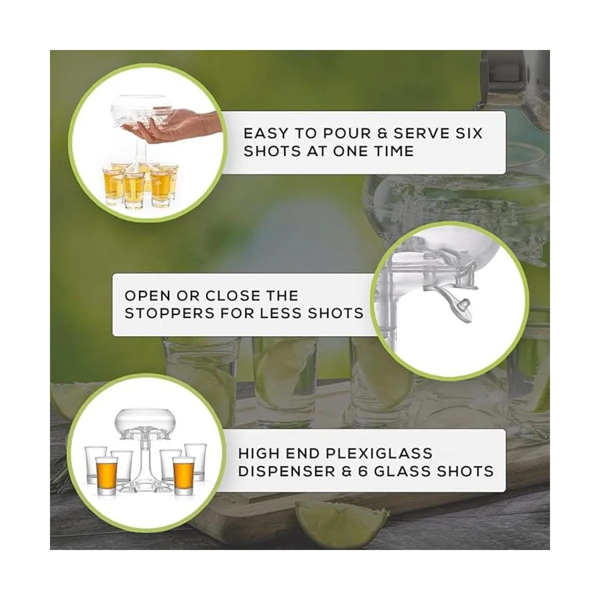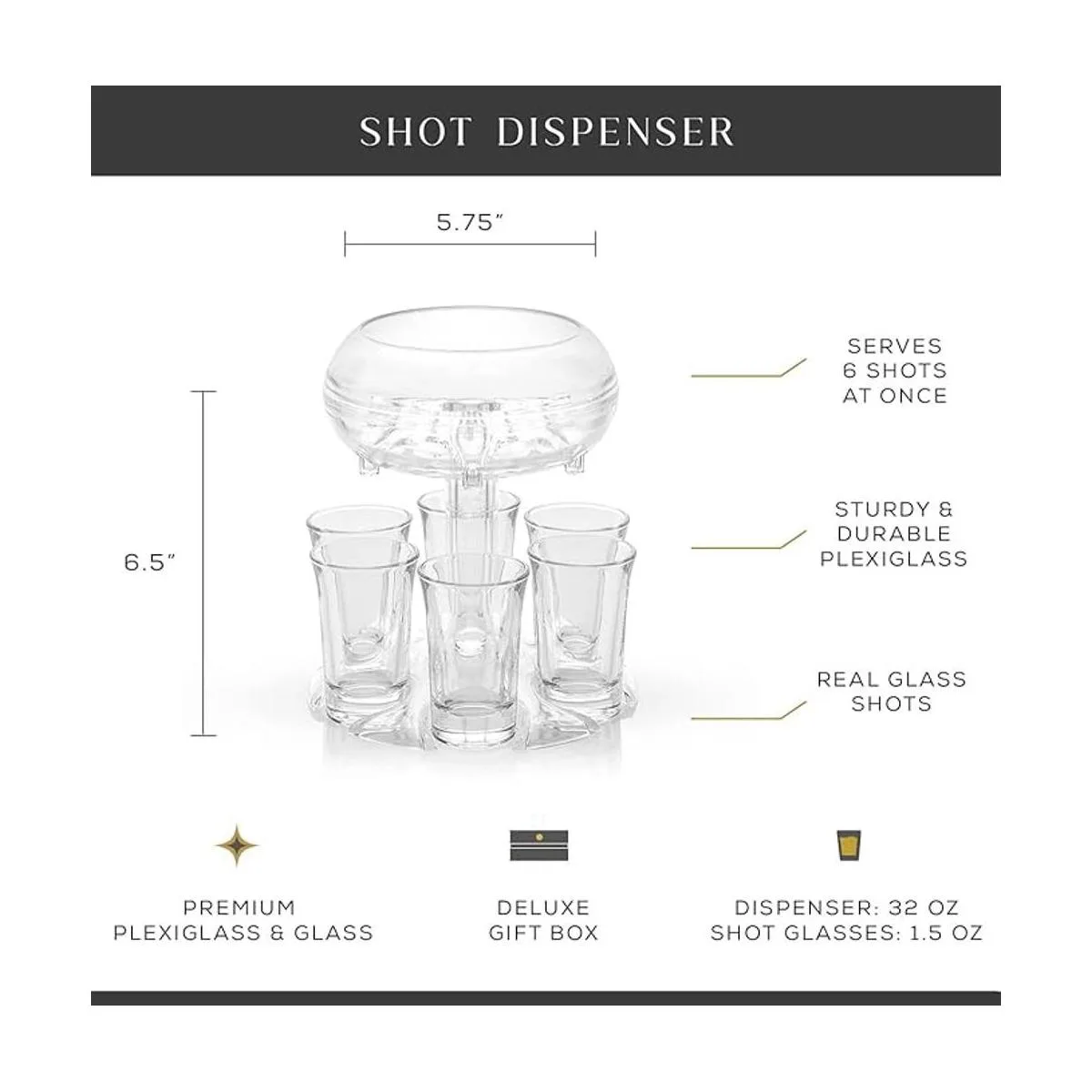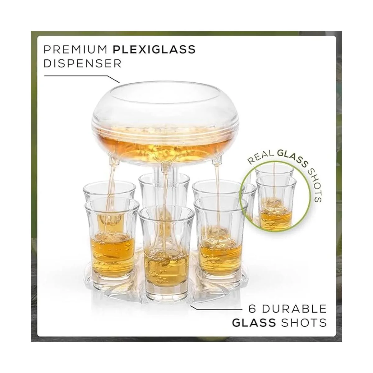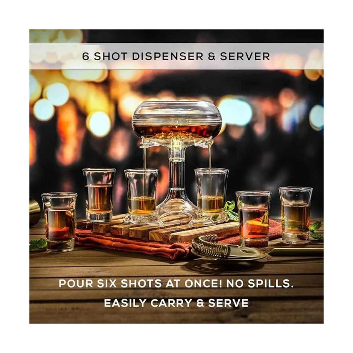JoyJolt Dispensador de 6 vasos de chupito y vaso de chupito de cristal. Dispensador de licor de 32 onzas para accesorios de bar en el hogar, suministros de fiesta, dispensador de bebidas de Halloween para fiestas, dispensador de alcohol de lujo.