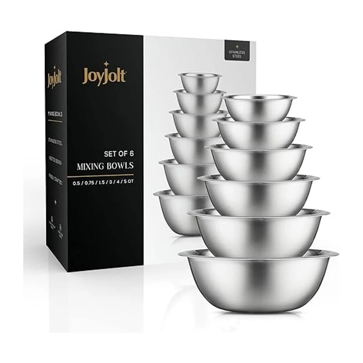 Juego de cuencos de metal duradero que se anida: cuando se trata de un juego de cuencos de mezcla de metal, lo quieres en cualquier tamaño para cualquier tarea: cuencos grandes y muy pequeños, así como ahorrar espacio, verdad Si es así, probablemente te encantarán estos seis cuencos para mezclar anidados. Se anidan perfectamente y cumplen con cada tarea de preparación de alimentos Cook for Joy, JoyFul de JoyJolt.