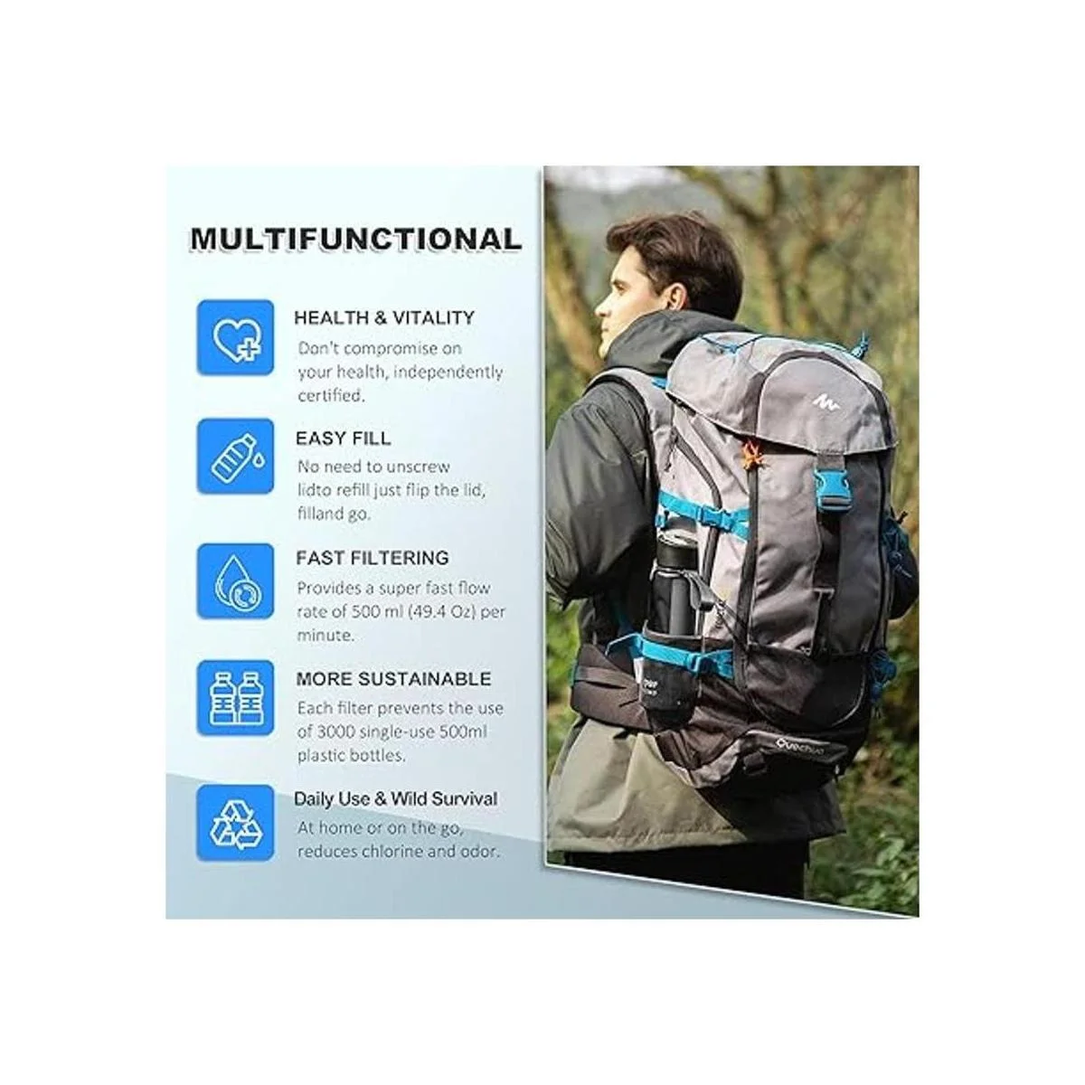 Uso diario y supervivencia salvaje: la botella filtrada portátil solo pesa 22 onzas, lo que no te traerá mucha carga cuando la lleves. Lo que es más importante, es un maravilloso asistente para la supervivencia de la naturaleza para proporcionar al instante agua saludable y potable para mantener la energía al aire libre.