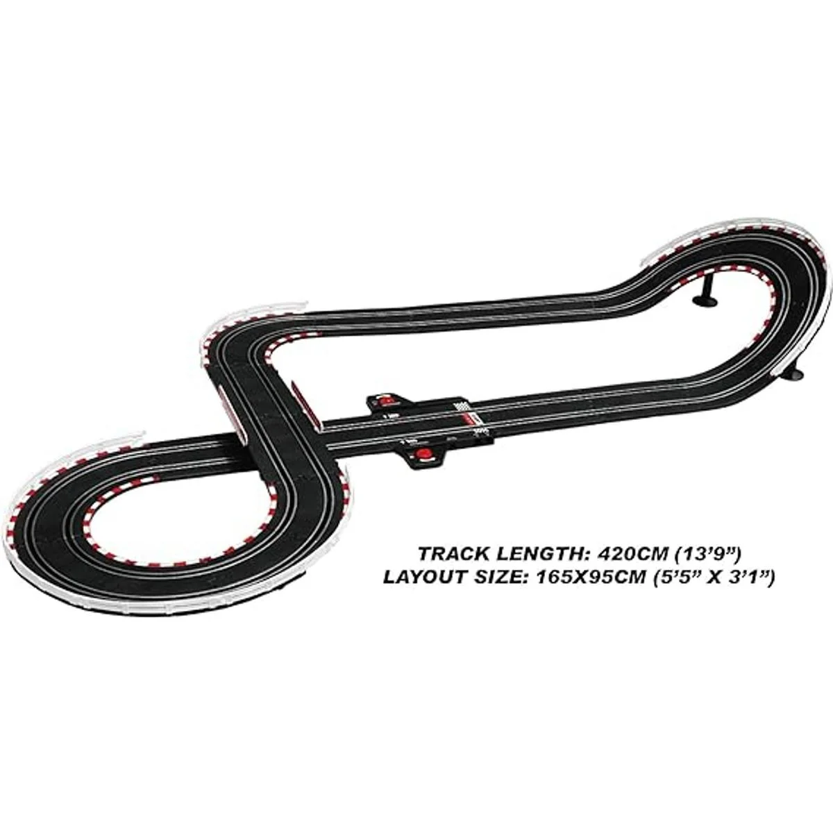 Mega pistas, pistas más anchas y más largas en comparación con las pistas de carreras tradicionales de escala 1/43. La distancia entre los coches es más amplia.