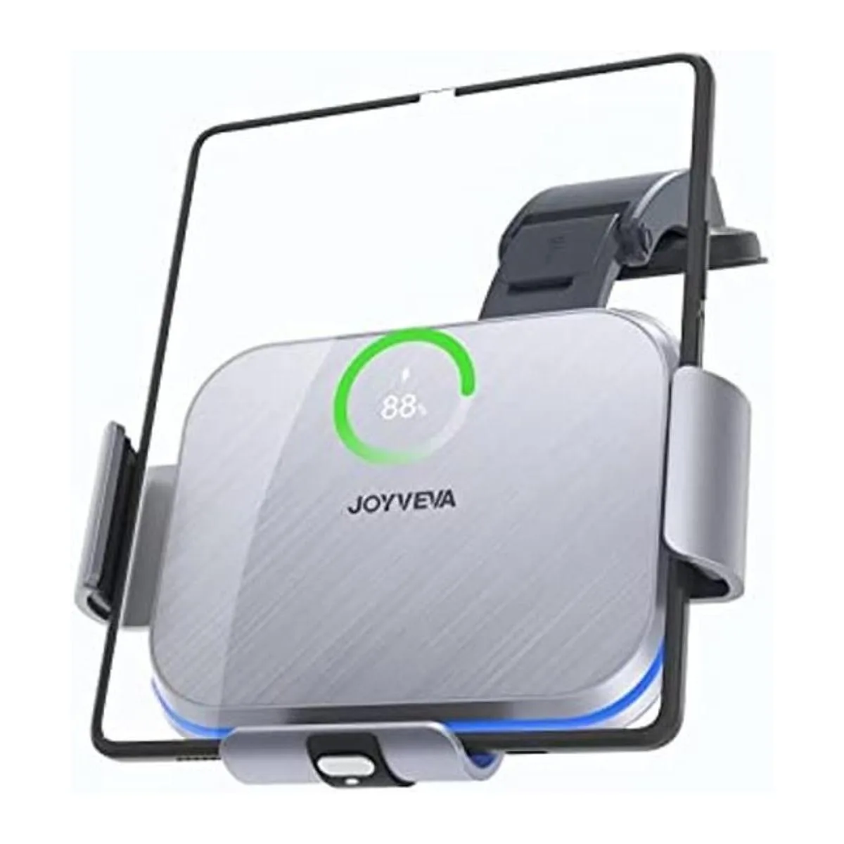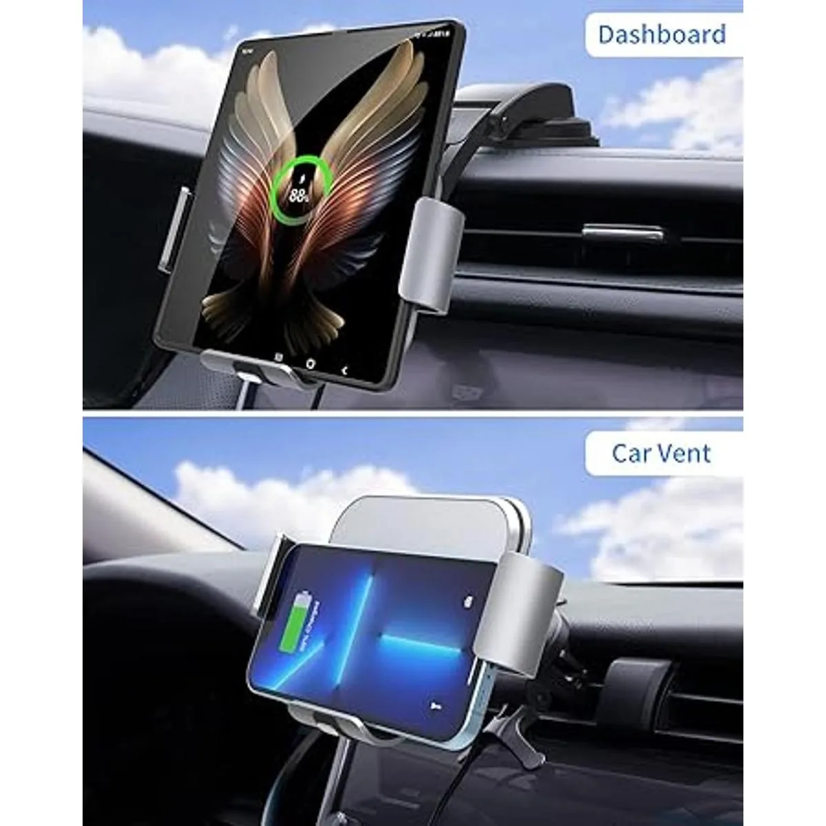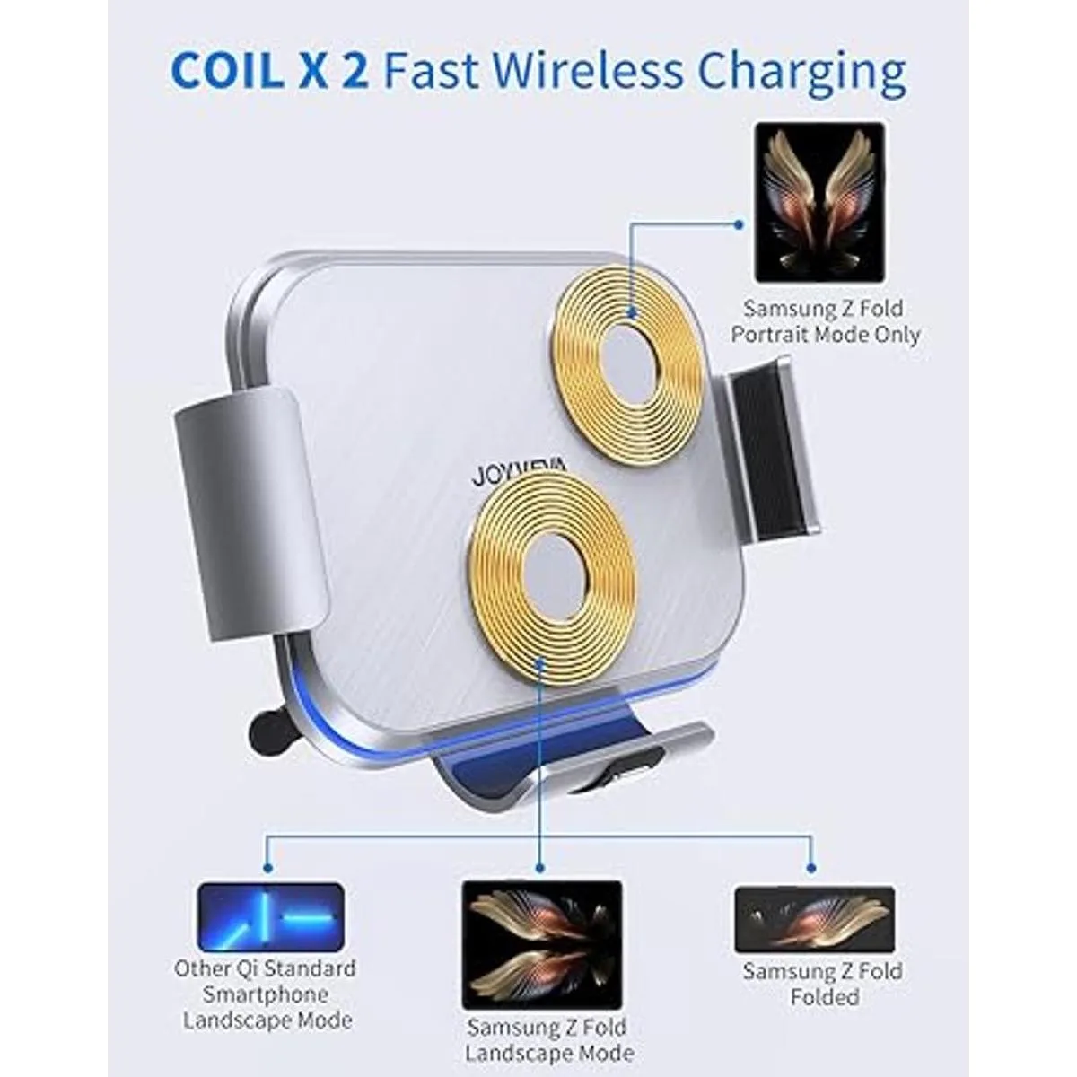 JOYVEVA Cargador inalámbrico de auto de doble bobina para Galaxy Z Fold 43, soporte de teléfono de carga rápida para Galaxy Z Fold 2, soporte de teléfono móvil horizontal para Galaxy Z Fold Series gris acero
