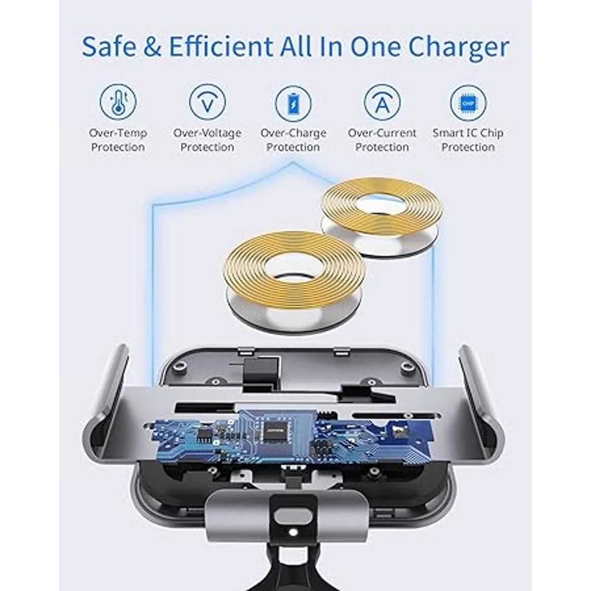Sensor de sujeción automática: apertura automática y diseño de sujeción, conveniente para un funcionamiento con una sola mano. Hace que la conducción sea más segura. Velocidad de apertura de clip suave, fácil de colocar el teléfono, el clip sujeta el teléfono firmemente sin miedo a golpes. Botón de liberación sensible en la parte inferior, una ligera pulsación, el clip se abre automáticamente, quita fácilmente el teléfono.