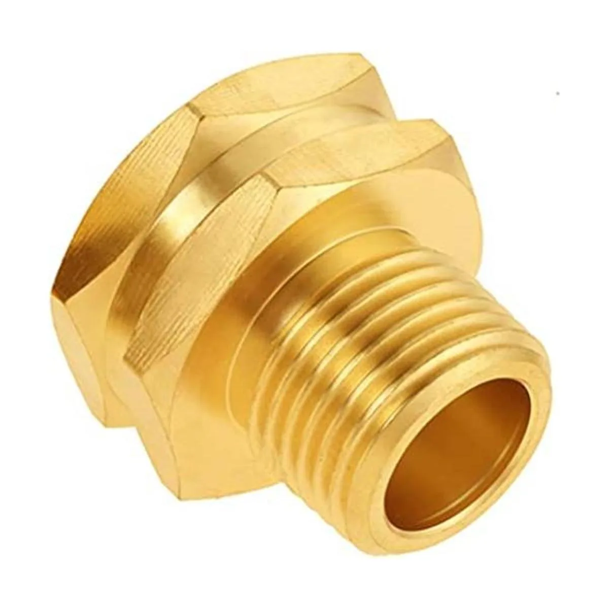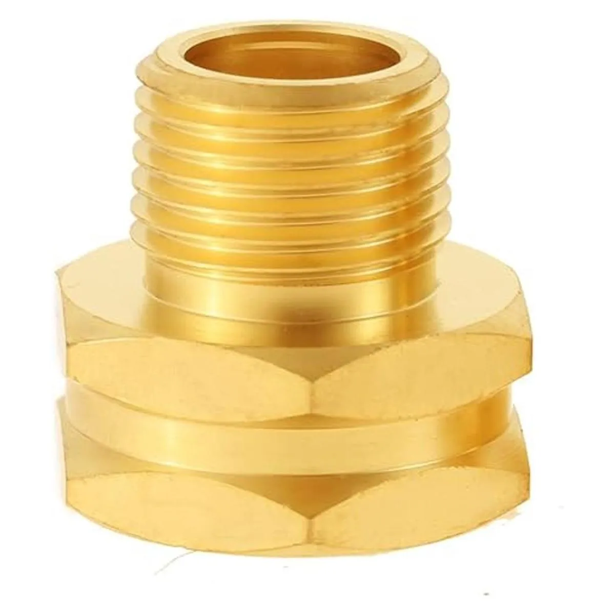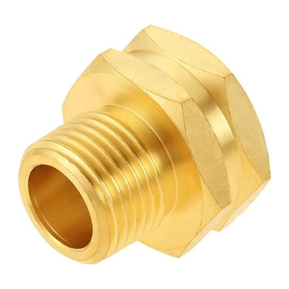 Este adaptador de latón de la serie Joywayus tiene un extremo roscado GHT hembra, extremo roscado NPT macho y conecta mangueras o accesorios de diferentes tipos.