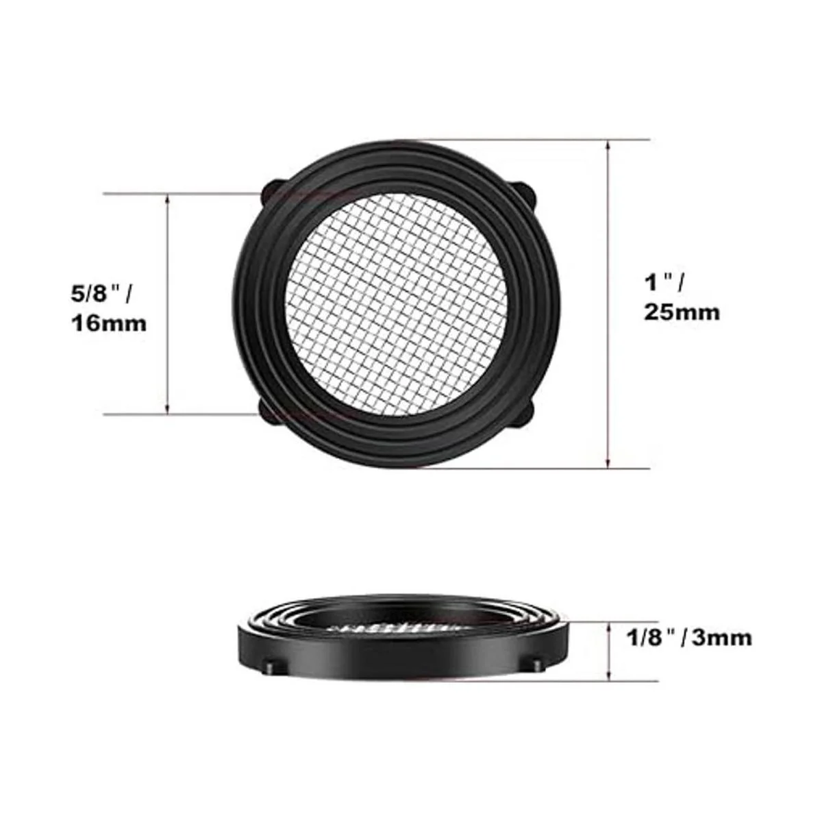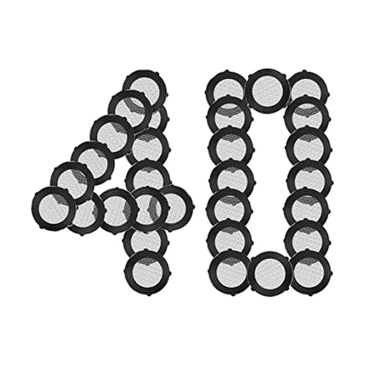 Tamaño: diámetro exterior: 0.984 in; diámetro interior: 0.630 in; grosor: 0.118 in; pantalla de filtro SS: 40 mallas; paquete de 40: cantidad adecuada para usar a largo plazo.