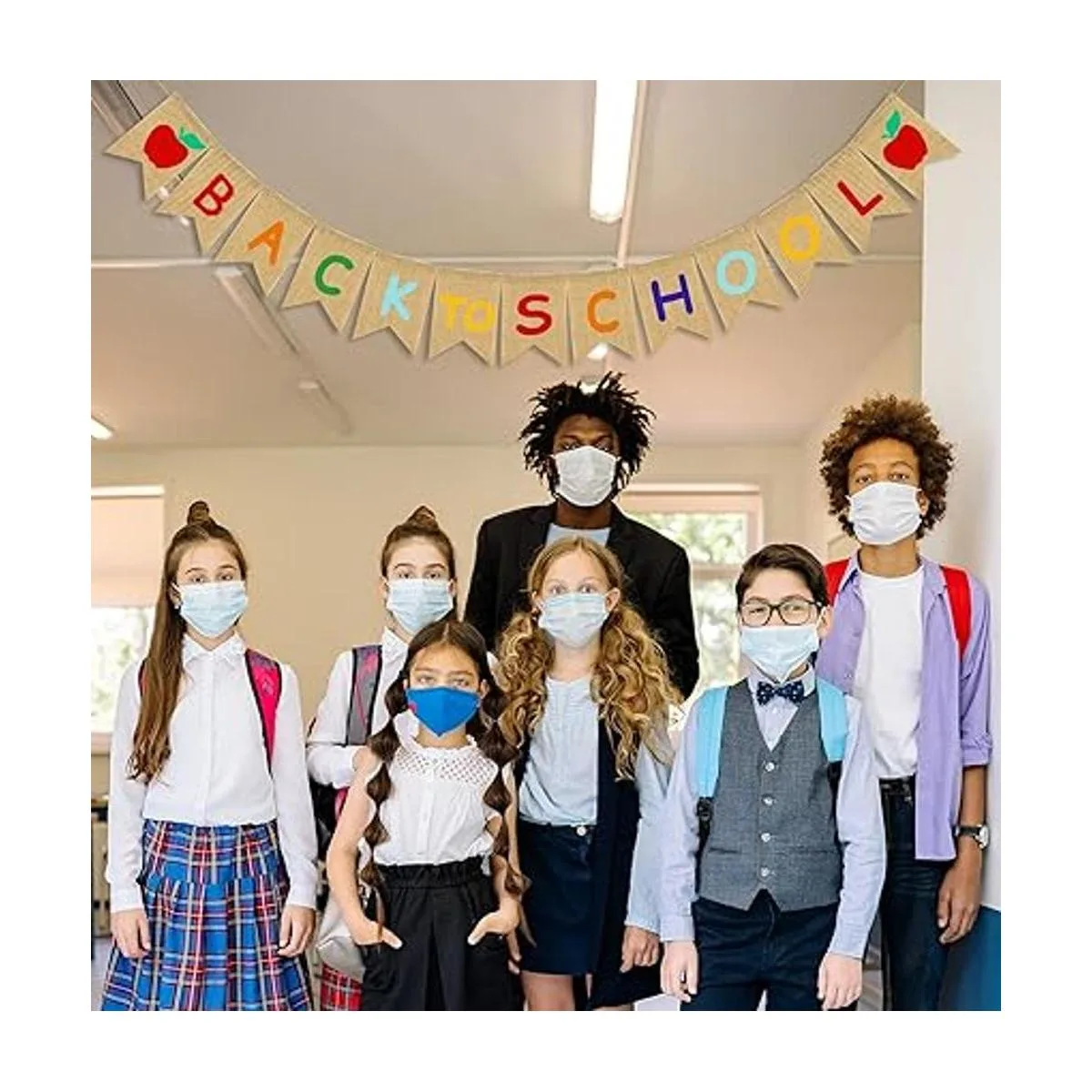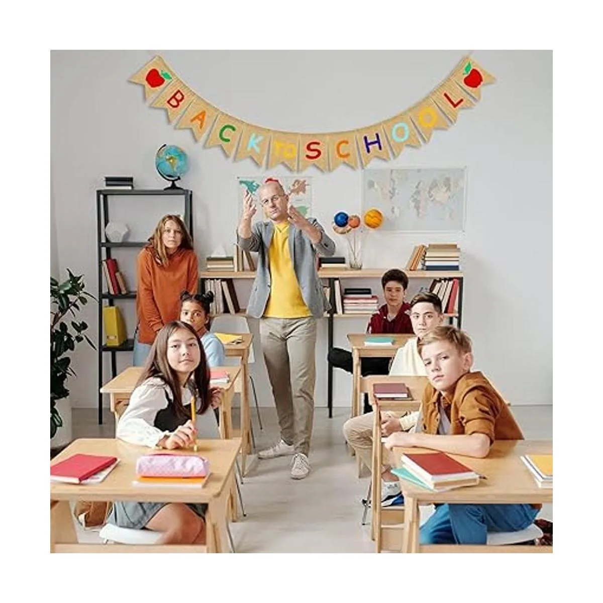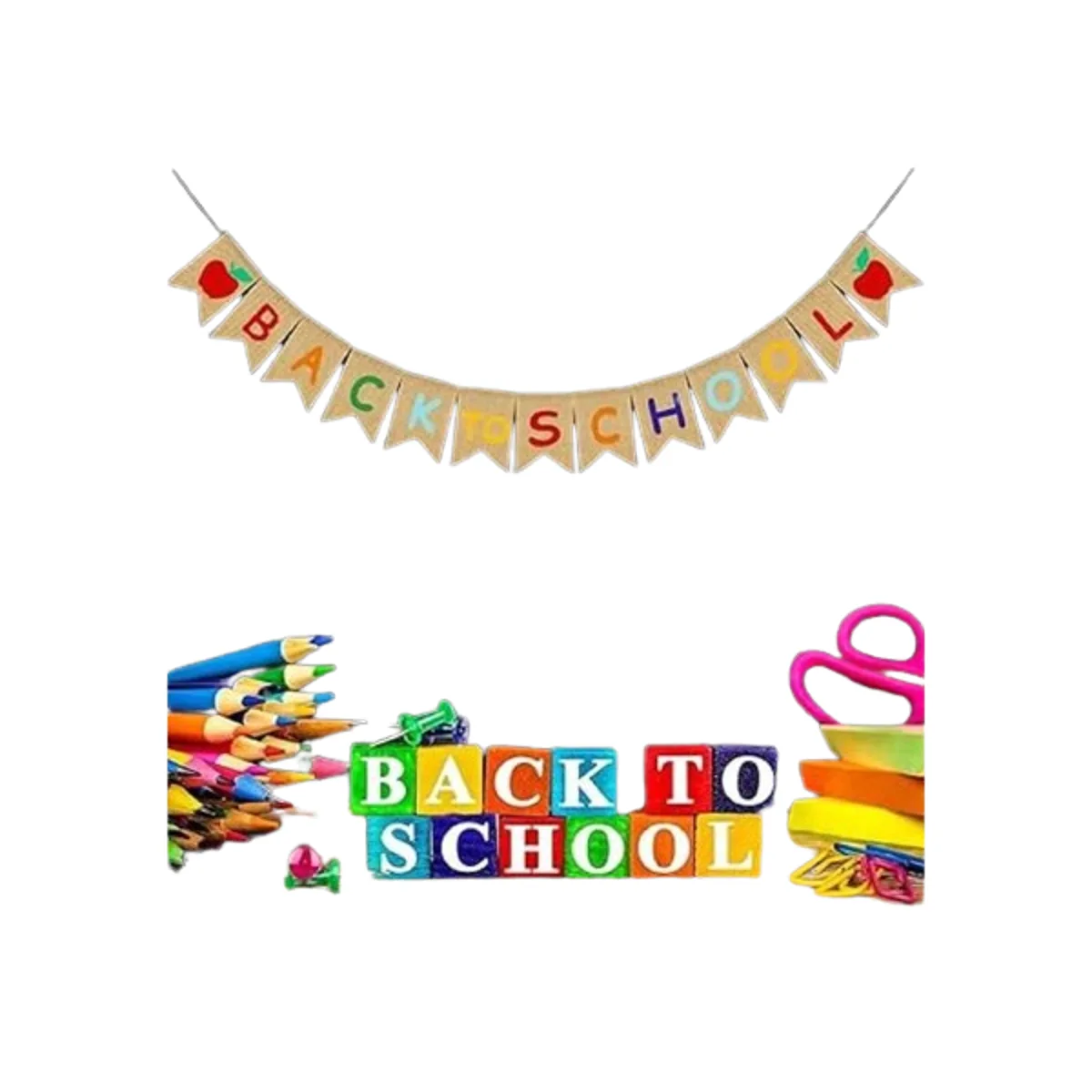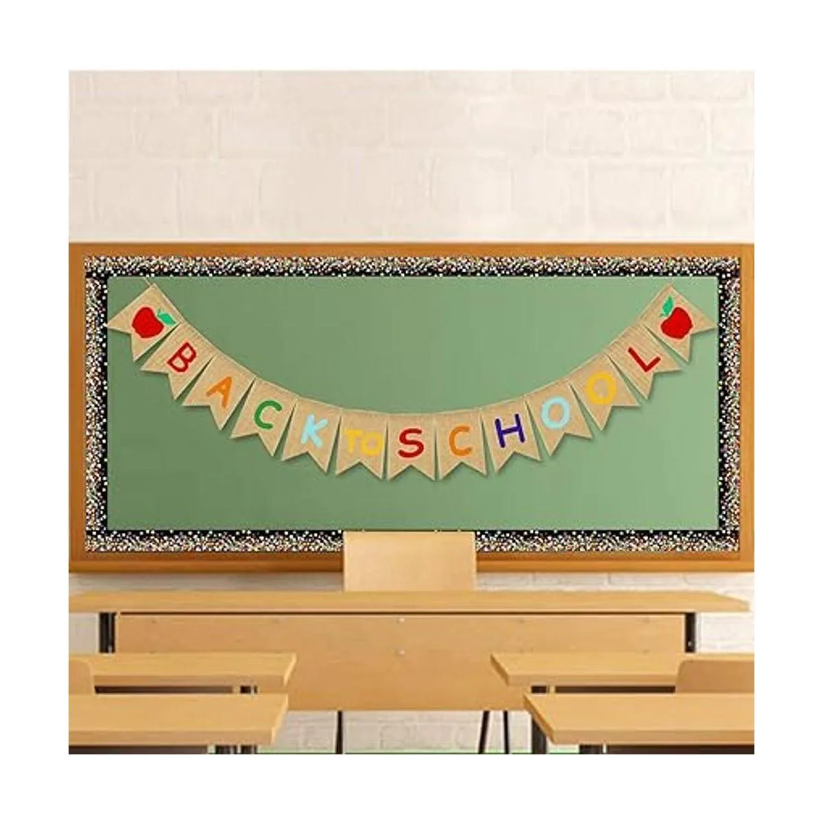 JOZON Cartel de arpillera de regreso a clases, guirnalda de banderines para el primer día de escuela, letrero de manzana, decoración para el hogar, fiesta, escuela, aula, pizarra, decoración colgante, suministros de fiesta