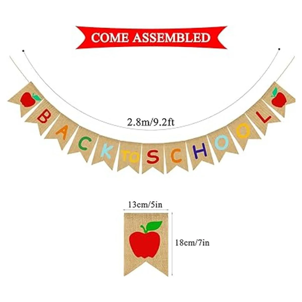No requiere bricolaje: cada pancarta mide 5.1 x 7.1 in. La pancarta es lo suficientemente larga 9.2 ft, se puede colgar en cualquier lugar que desees. La pancarta de aula viene premontada y lista para colgar, no necesita montaje del comprador.