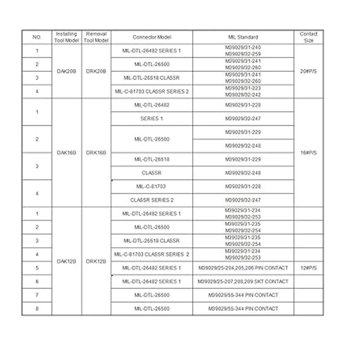 Diseñado para eliminar contactos en conectores electrónicos MILDTL26482 MILDTL26500 MILDTL26518 AS50151 AS34001 AS34121 AS81703 series