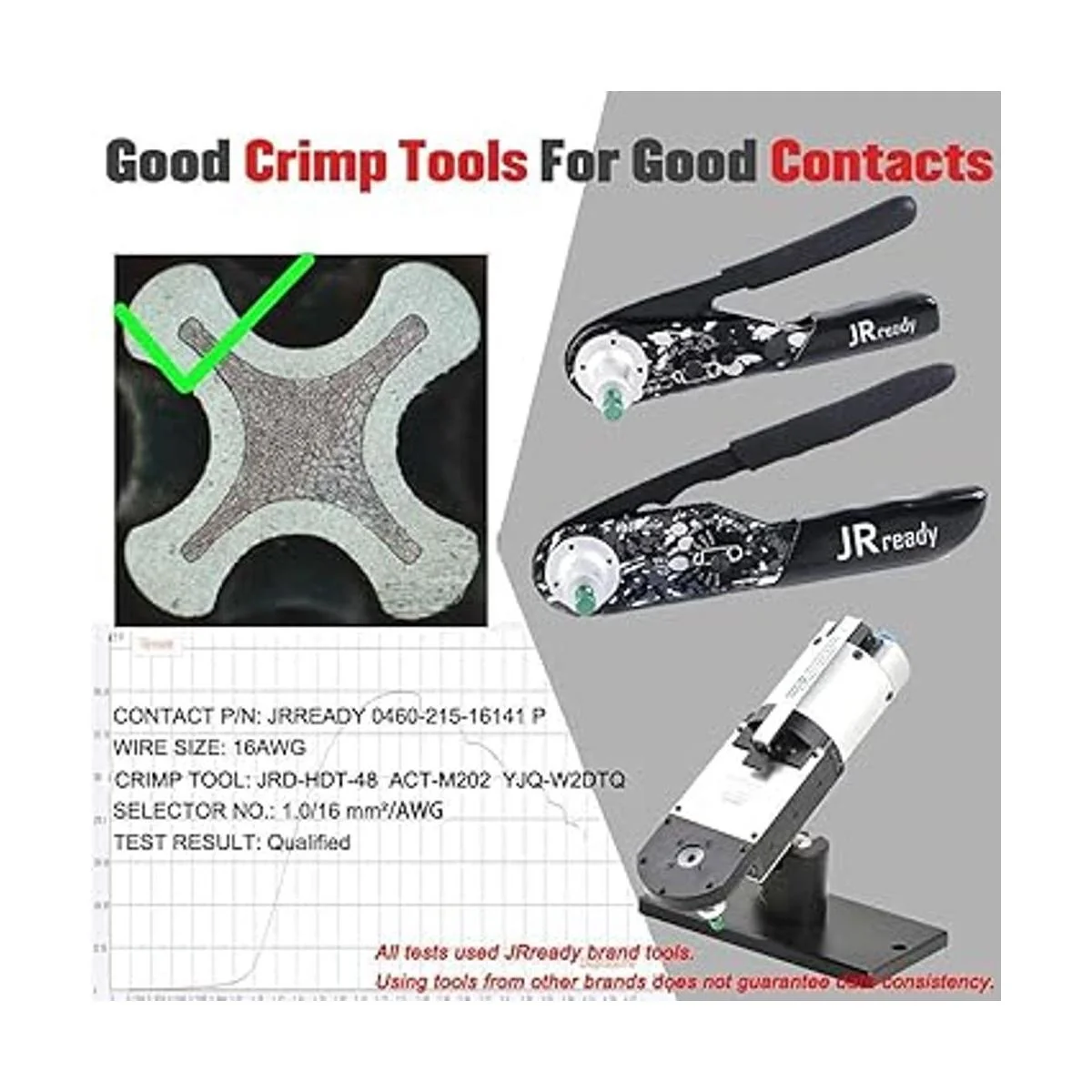 Uso de la herramienta: se recomienda utilizar la herramienta de crimpado JST2109DT1 o JST2109DT2 para engarzar. Inclinadores especialmente diseñados que garantizan la fuerza de extracción. El trinquete de precisión controlado por ciclo asegura la consistencia de impresión y la calidad de crimpado de cables y contactos.