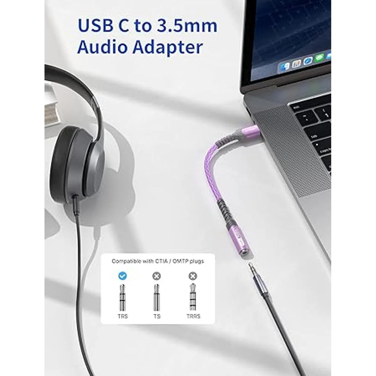 Dongle multifunción: este adaptador compacto USBC a AUX te permite escuchar música y contestar llamadas de teléfono con tus auriculares y también soporta la función de control de cable.