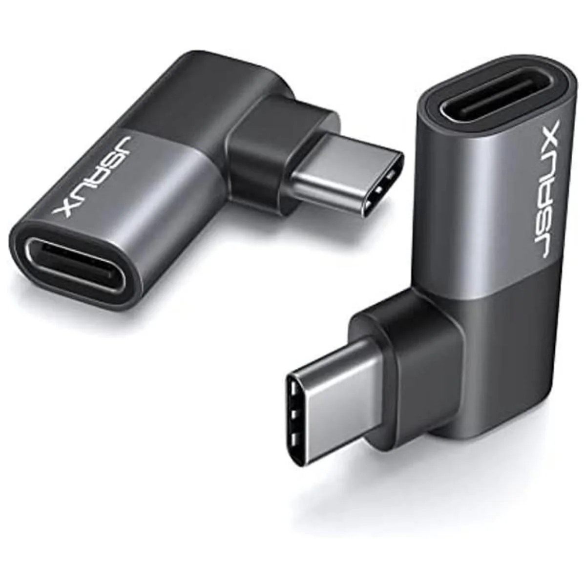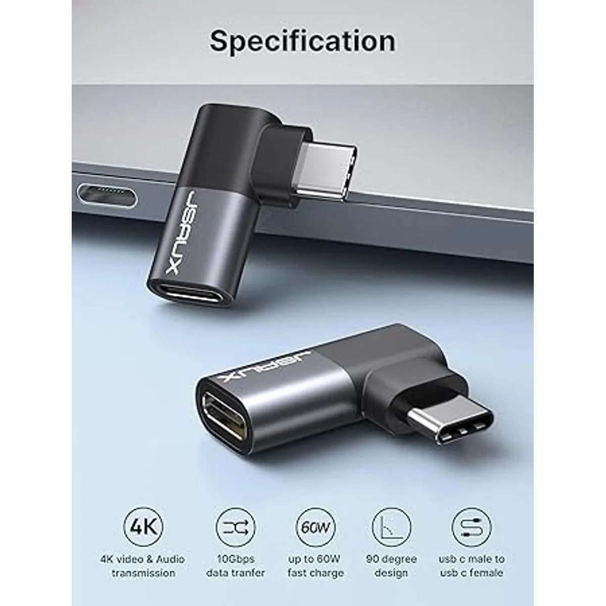 JSAUX Adaptador USBC de ángulo recto de 90 grados a hembra USBC, paquete de 2 extensores de carga rápida tipo C izquierda y derecha USBC de 3.110 Gbps PD de 60 W para MacBook, Switch, Deck de vapor, laptop, tablet y teléfono móvil