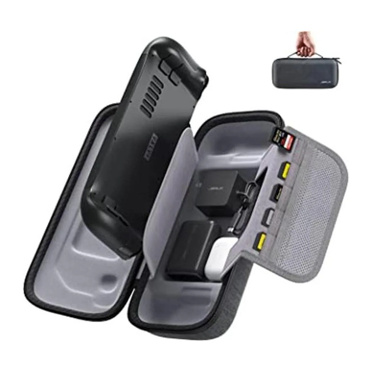 JSAUX BG0102 Funda de transporte compatible con cubierta de vapor, funda protectora rígida integrada con adaptador de corriente alterna, funda de transporte portátil para consola de cubierta de vapor y accesorios