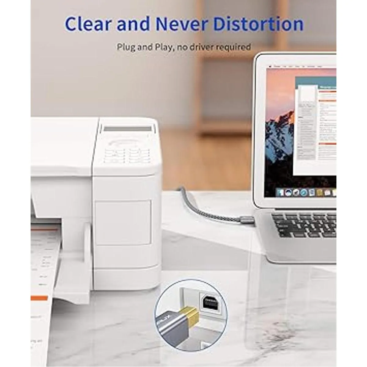 Diseño de nailon sin enredos: diseño trenzado de nailon sin enredos, este cable de impresora USB 2.0 es mucho más fiable que otros en su gama de precios. El cable trenzado de nailon de alta calidad añade durabilidad adicional y no se enreda.