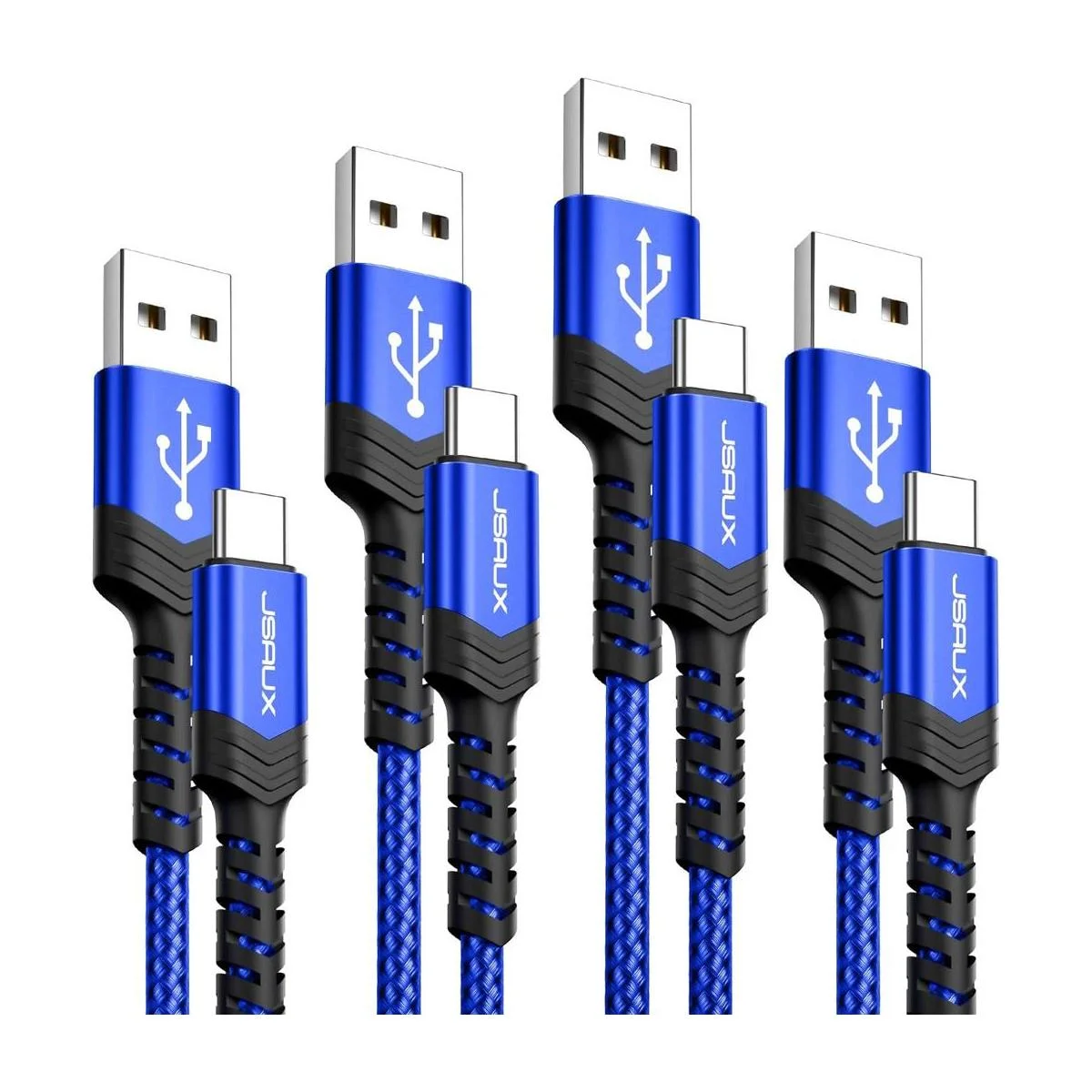 JSAUX Cable USB C, paquete de 4 unidades 10 pies6.6 pies3.3 pies USBA a tipo C 3A cable de carga rápida compatible con Samsung Galaxy S22 S21 S20 S10 S9 S8 Plus Note 20 A53 A52 Google Pixel 6 Switch Xbox PS5 azul