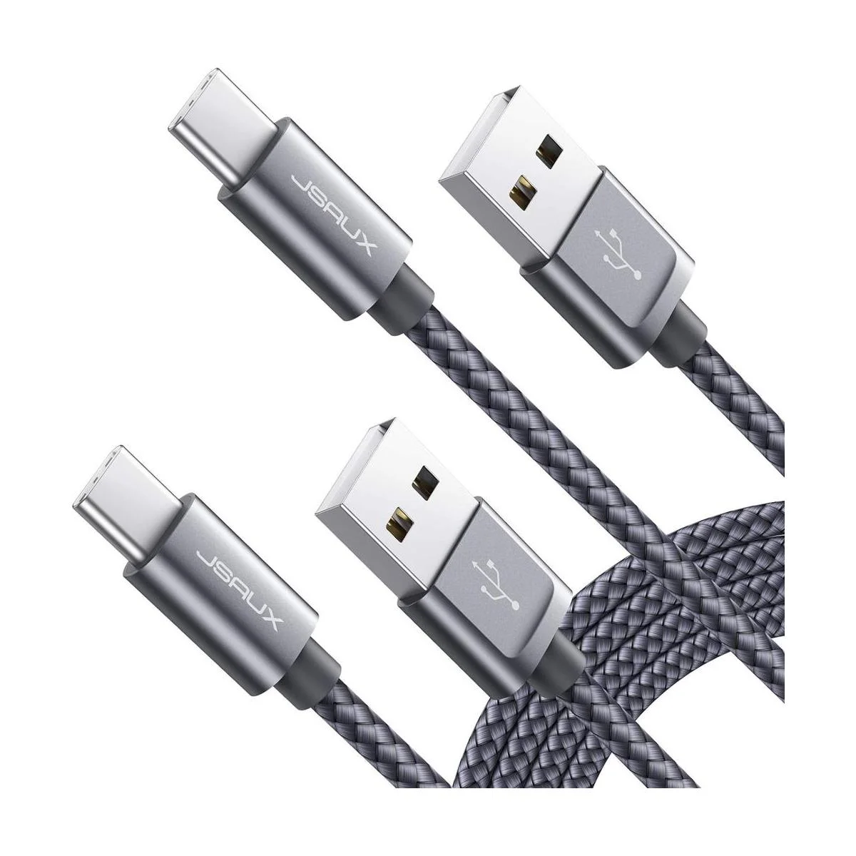 Jsaux Cable USB tipo C 2 unidades, 6.6 pies USBC a USB A, cable de nailon trenzado, compatible con Samsung Galaxy S10 S9 S8 Plus Note 9 8, Moto Z Z2, LG V30 V20 G5 G6, Google Pixel, Nintendo Switch, gris