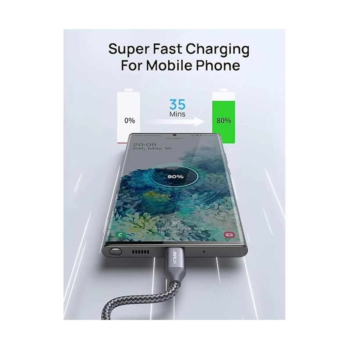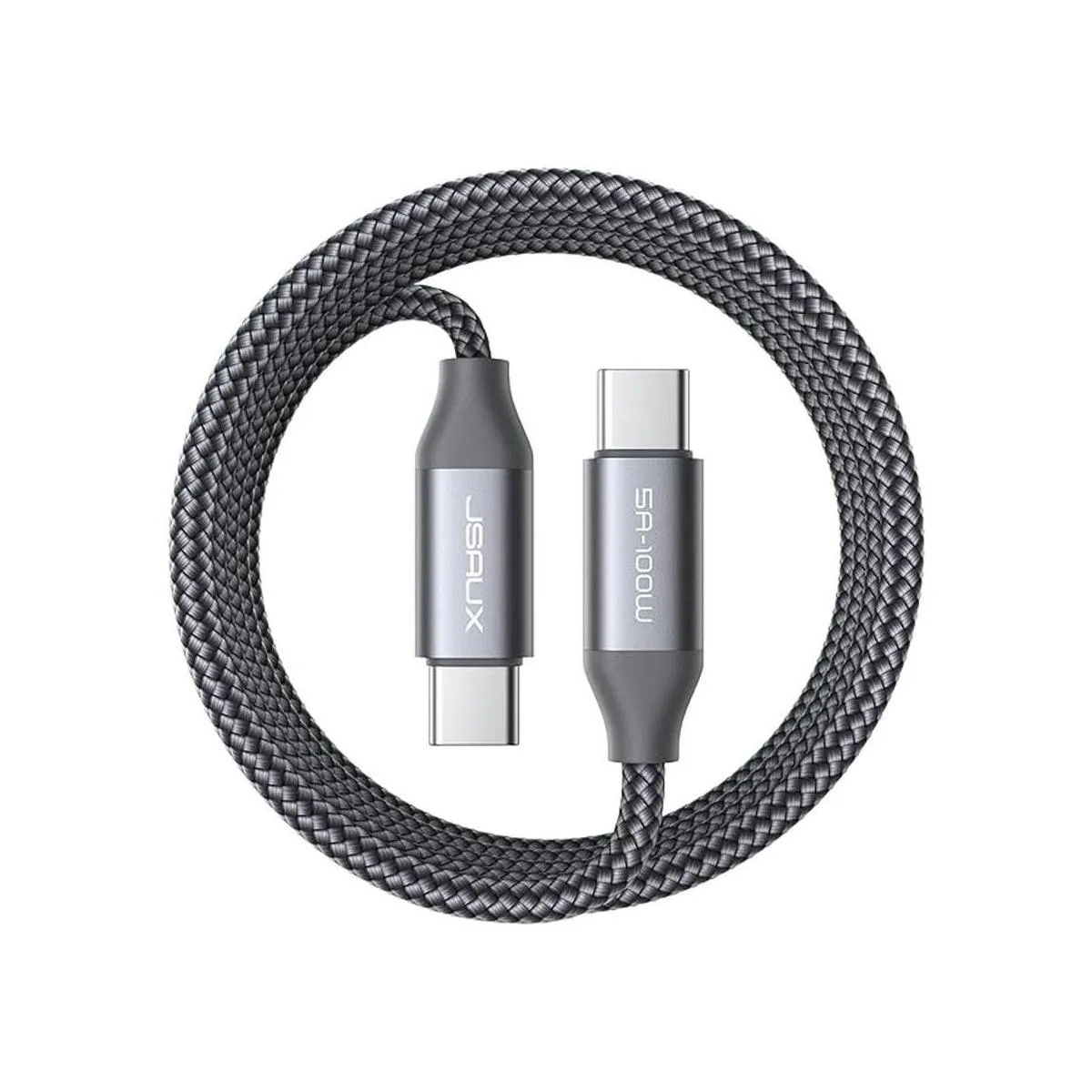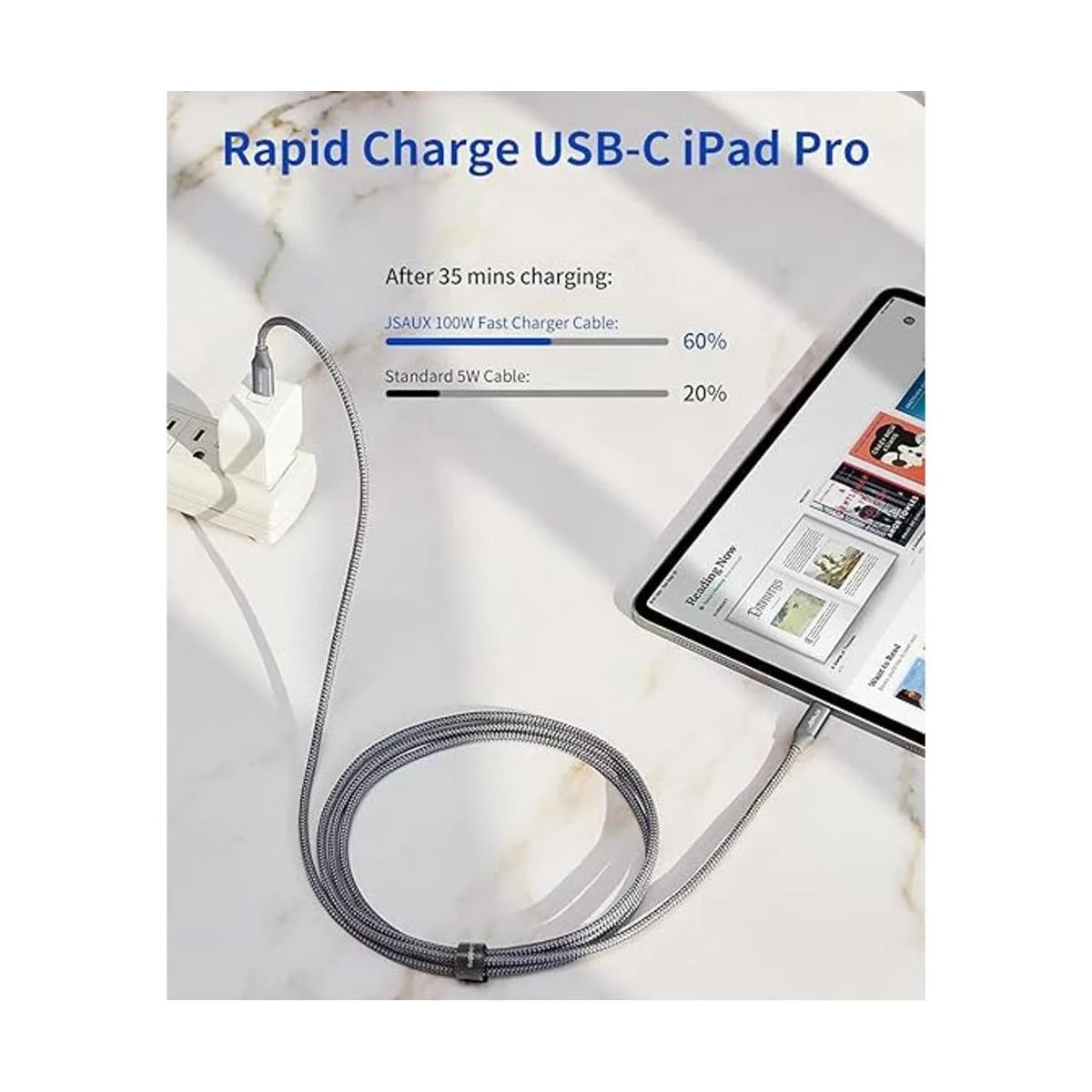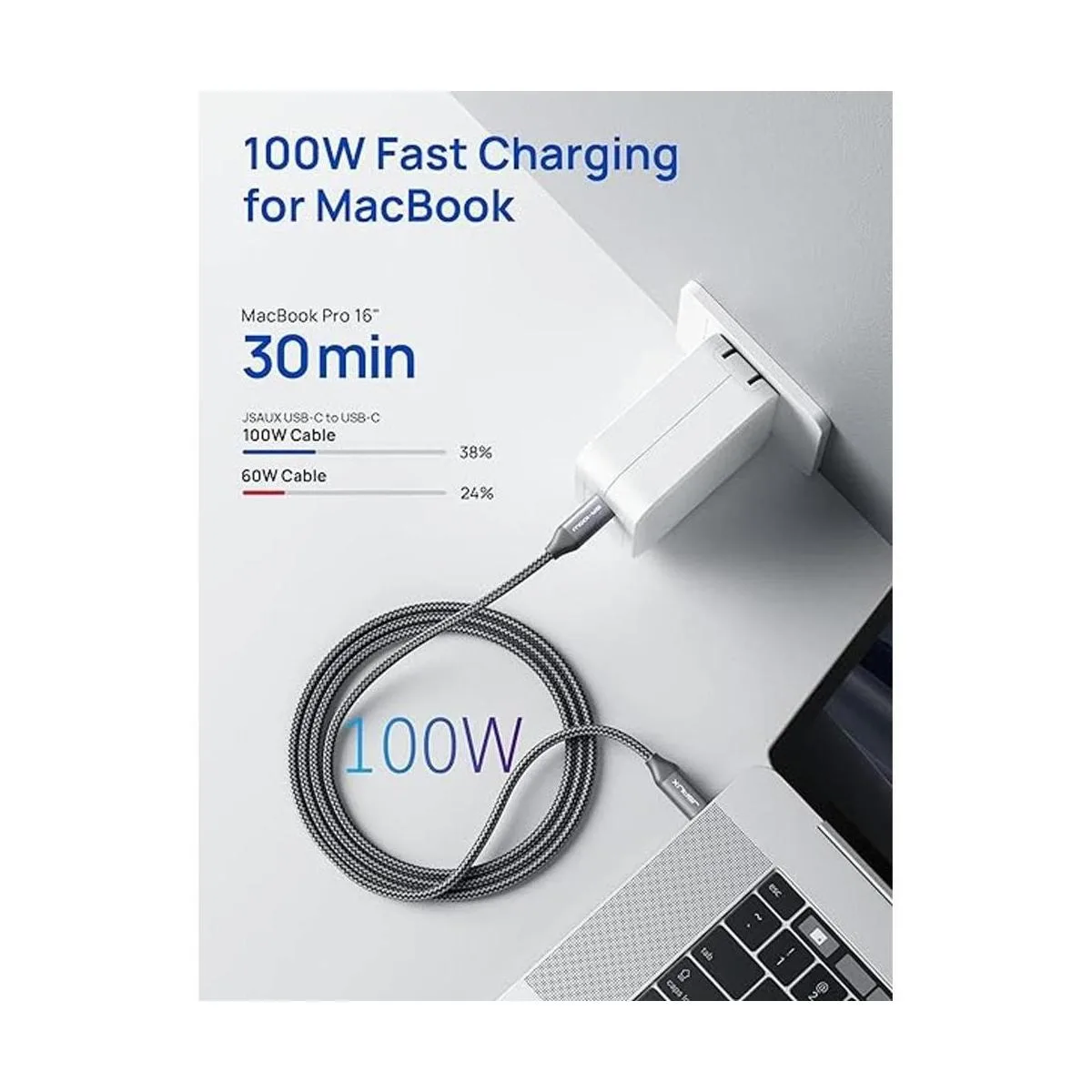 JSAUX Cable USBC a USBC de 100 W, 10 pies, 5 A, cable de carga súper rápido tipo C, compatible con MacBook Pro 2022 M2MacBook Air 2021 iPad Pro 12.9 11 Air 5 Samsung Galaxy S22 Pixel 7 6 Switch Steam Deck gris